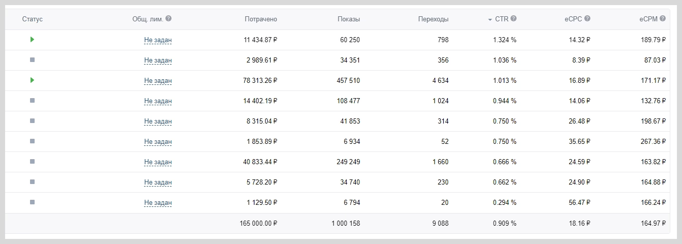 Разбивка результатов по кампаниям