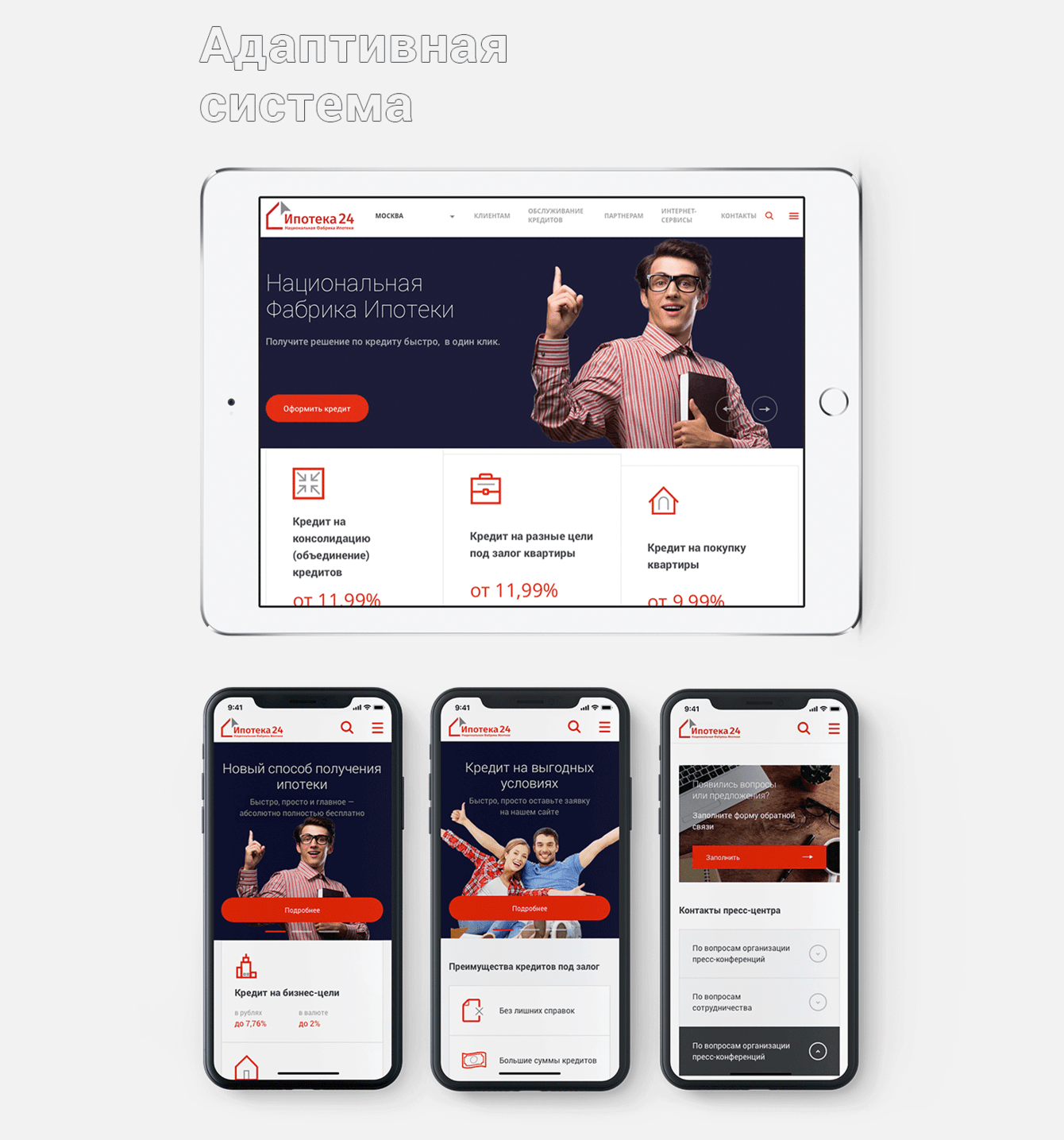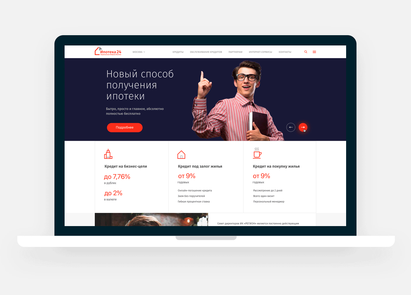 Для специализированного оператора российского ипотечного рынка разработан адаптивный корпоративный сайт на платформе 1С-Битрикс.