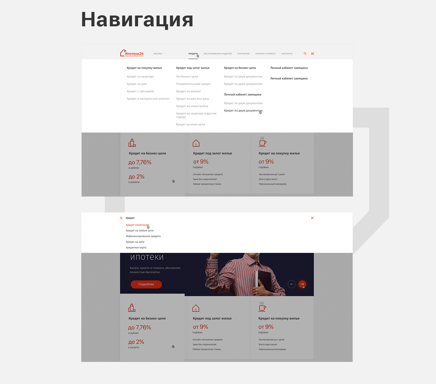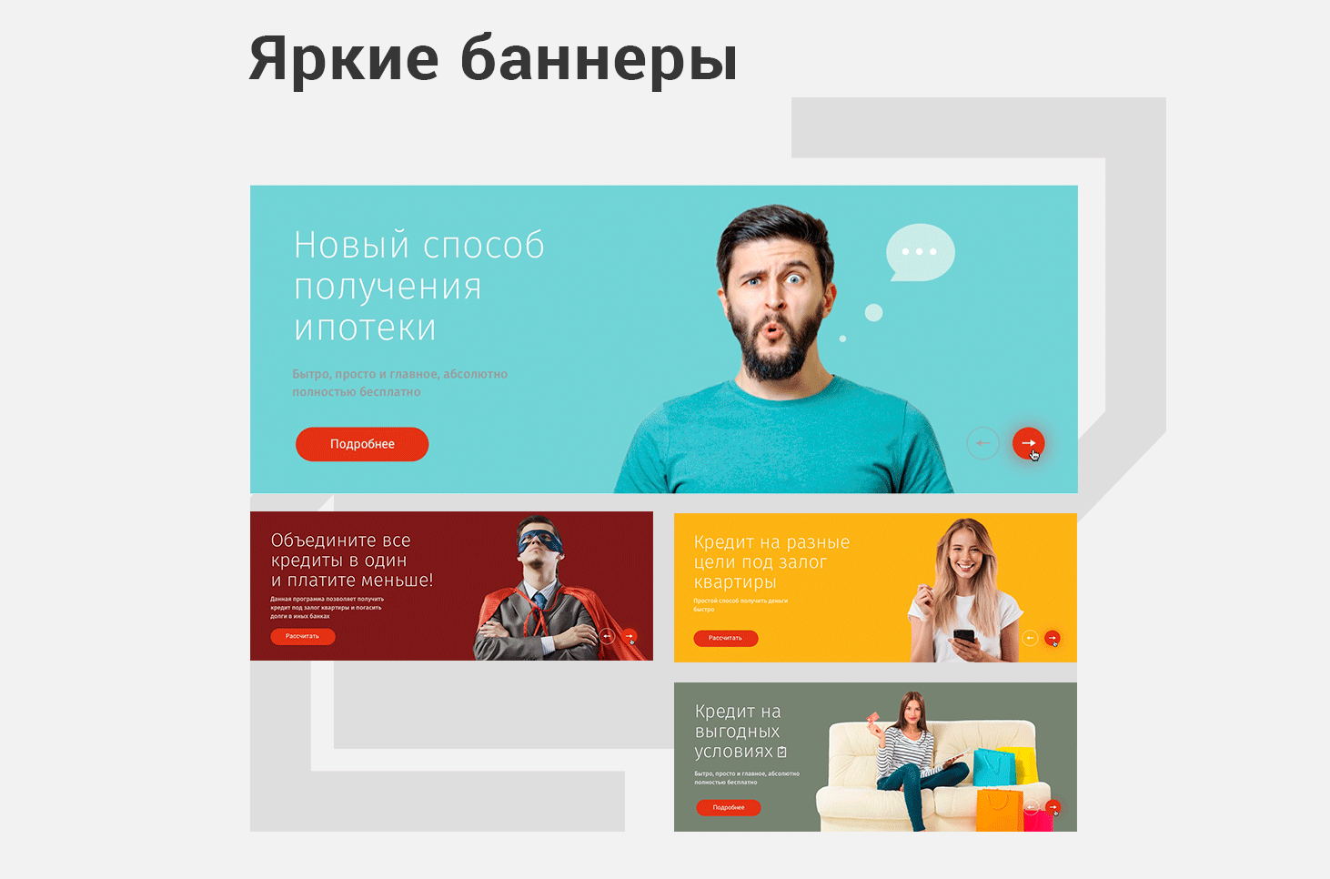 Простота оформления кредитов. Удобная навигация и яркие акценты в дизайне на равне с простой и понятной структурой создают все условия для уверенности.