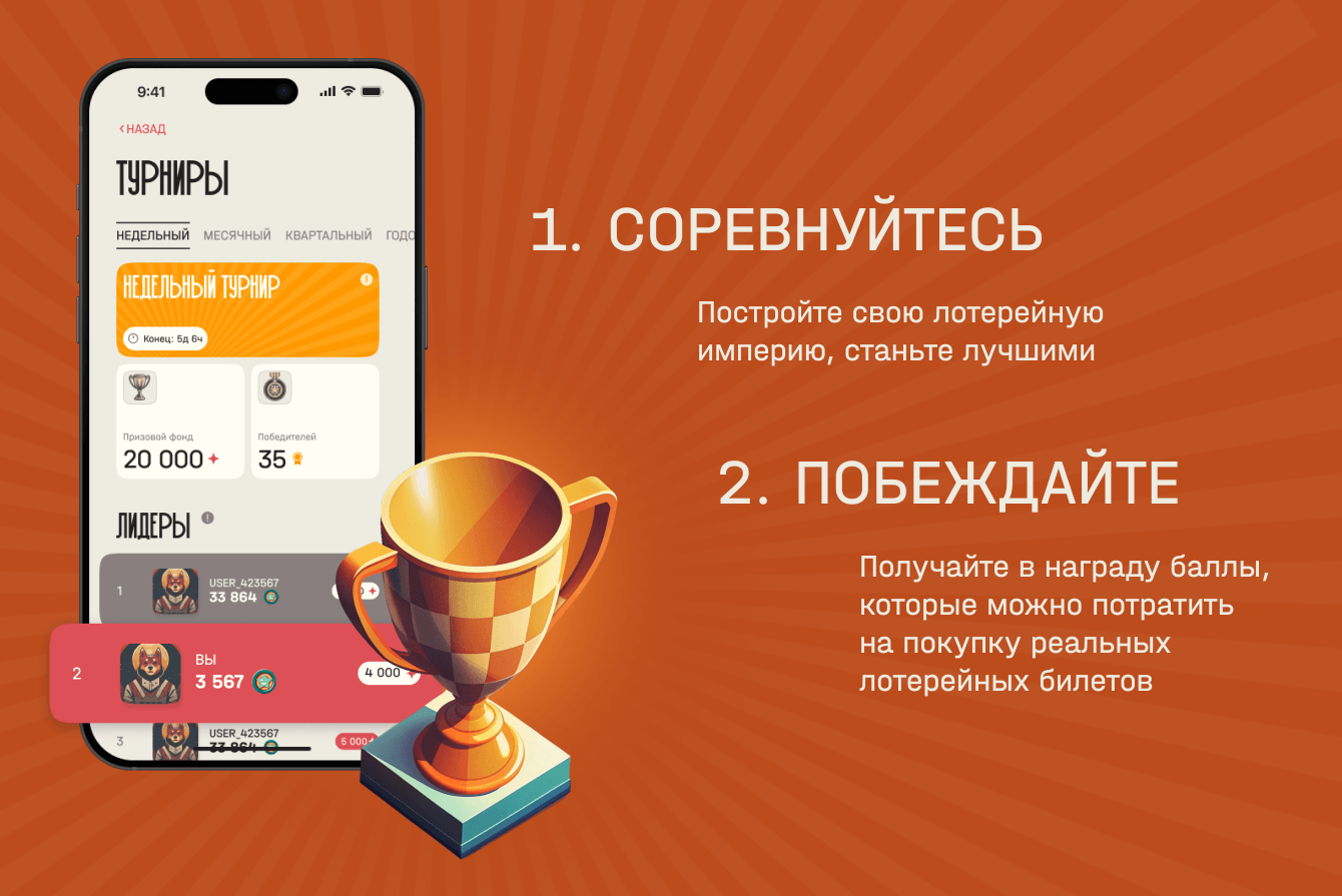 Мы разработали мобильное приложение, которое сделало бренд ближе к аудитории и открыло новые возможности в digital-среде, позволив игрокам погрузиться в увлекательный мир лотерейного бизнеса.