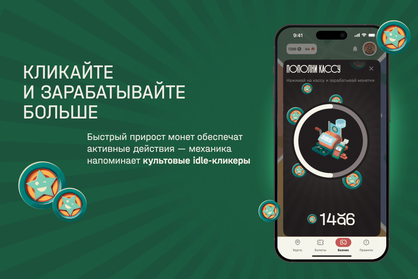 Кликайте и зарабатывайте больше. Быстрый прирост монет обеспечат активные действия — механика напоминает культовые idle-кликеры.
