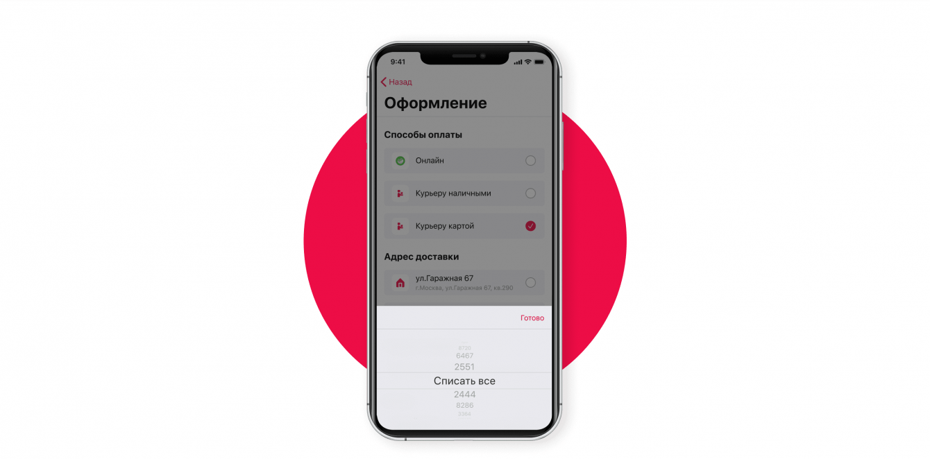 За каждую покупку пользователь получает бонусные рубли, которыми можно оплатить часть заказа. Чтобы выбрать, сколько баллов списать с бонусного счета, достаточно прокрутить выпадающий список.