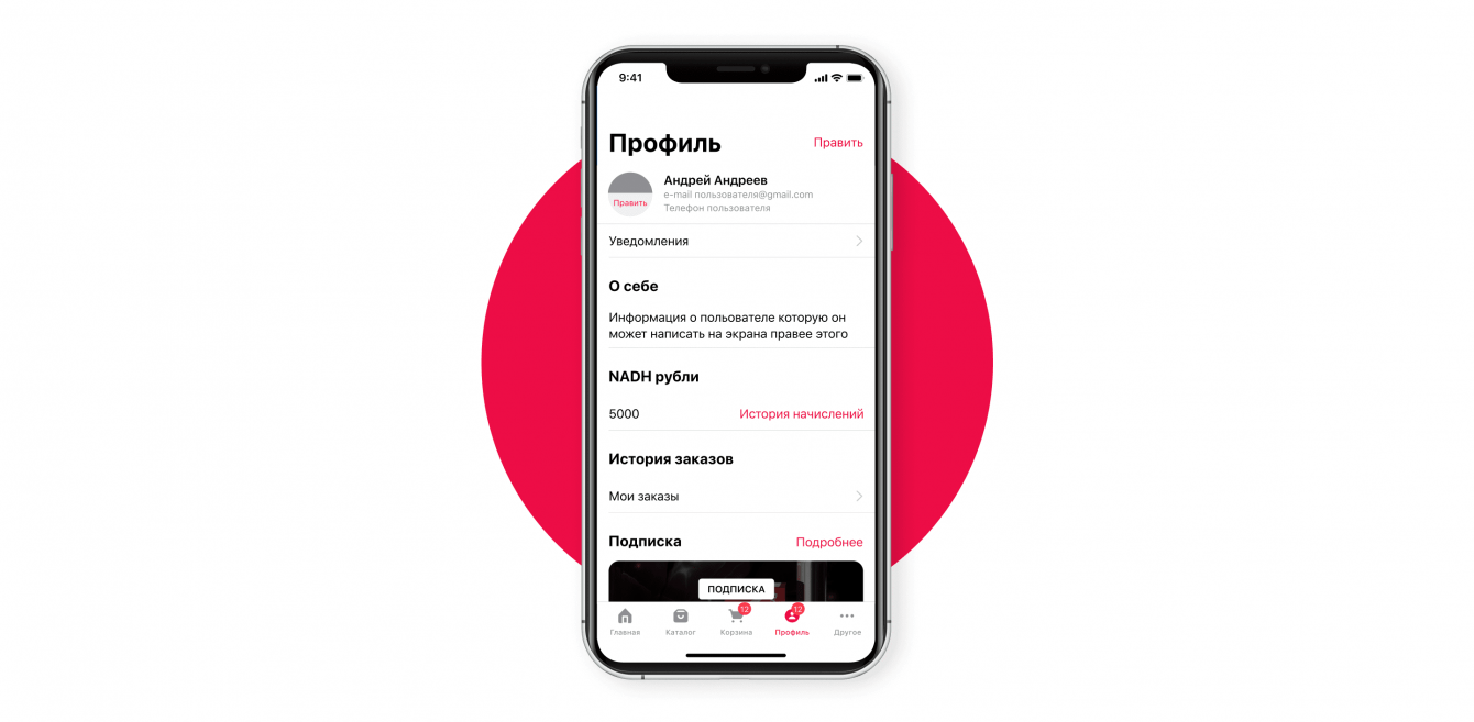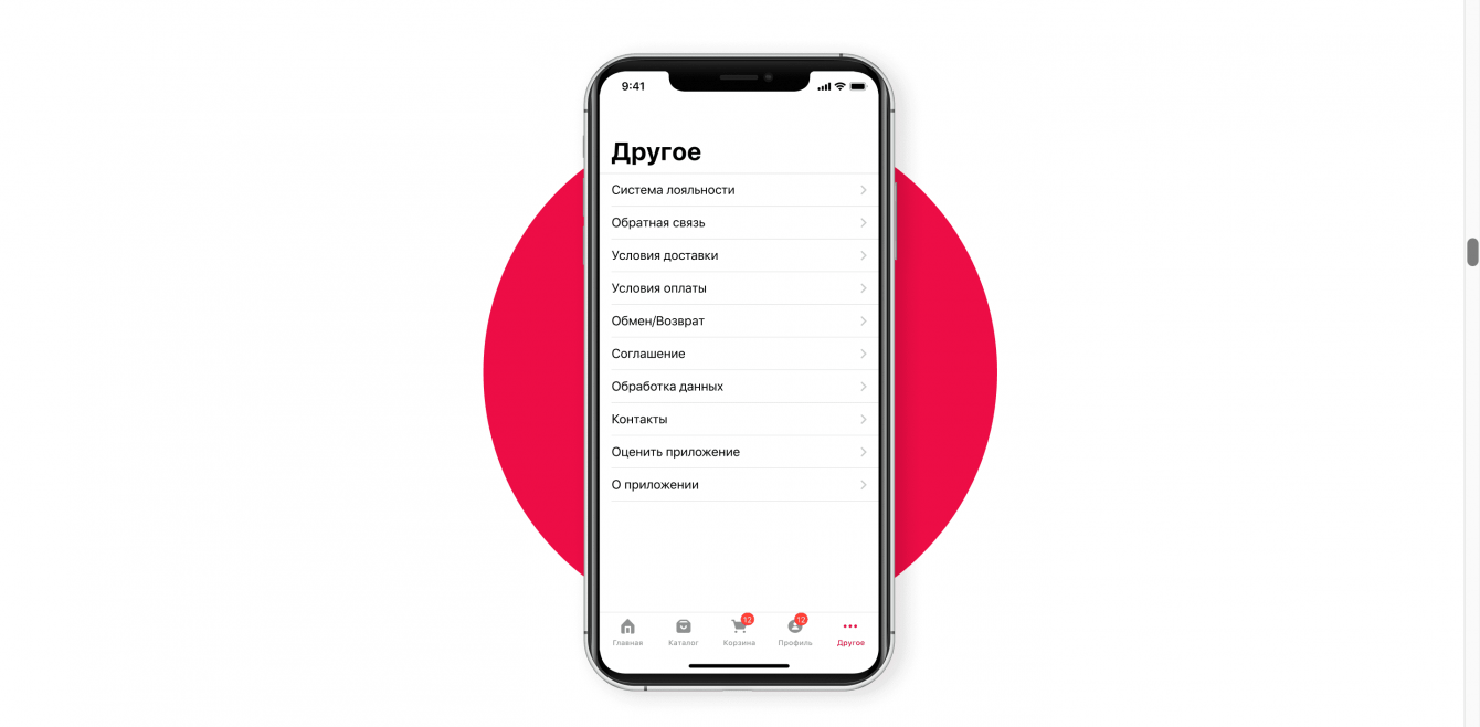 В личном кабинете покупатель может добавить информацию о себе, посмотреть историю заказов и бонусов, начисленных по системе лояльности. Нажав на «Уведомления», можно настроить получение уведомлений прямо из приложения — для этого не нужно заходить в настройки смартфона.