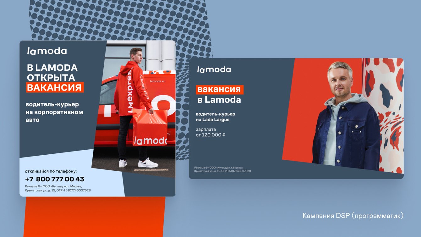 Riverstart подключается к решению задач найма по гибкой модели: можем взять на себя весь процесс или работать в связке с HR-командой заказчика. Lamoda предоставляет готовые тексты объявлений и креативы, а также список интересующих её каналов для размещения, а Riverstart взяли на себя рутинную работу по запуску programmatic-рекламы и организации размещений в Телеграме и ВКонтакте.