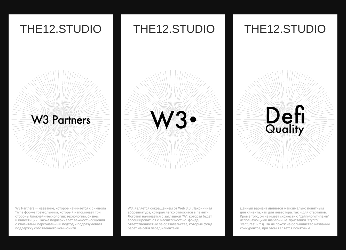В результате детального анализа и маркетинговых исследований нами были разработаны четыре разных концепта нейминга, наиболее четко передающих основные ценности фонда. Основой для концептов послужили: глубокий анализ специфики сферы деятельности венчурной компании и индивидуальный подход к особенностям данного направления, что и являлось нашей основной задачей.