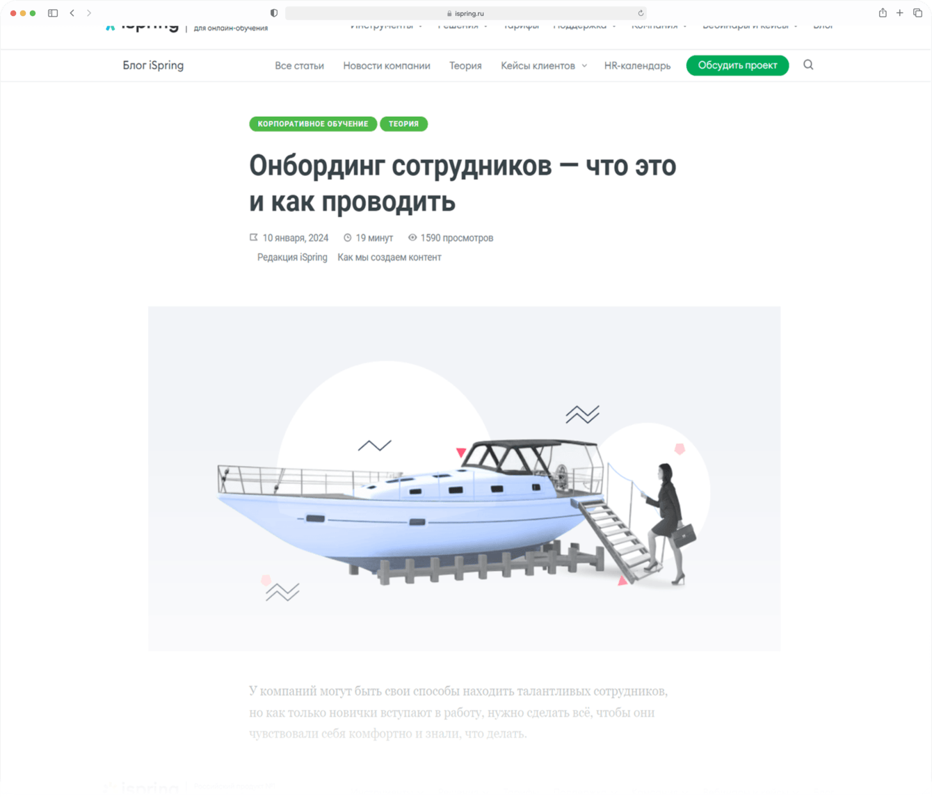 Для каждой статьи мы придумывали идею обложки — метафору по теме текста. Например, для статьи про онбординг мы нарисовали девушку в деловой одежде, которая заходит на борт корабля.