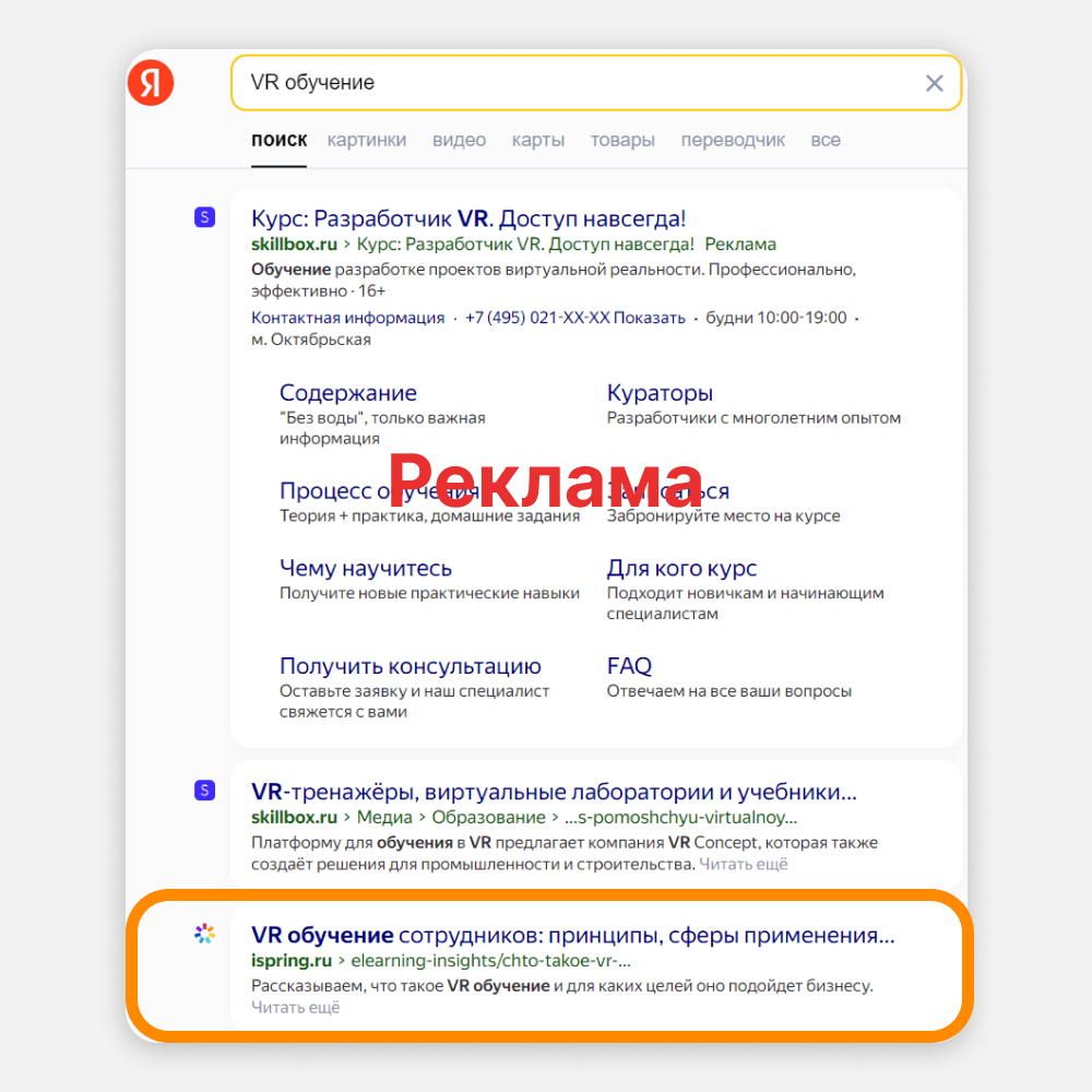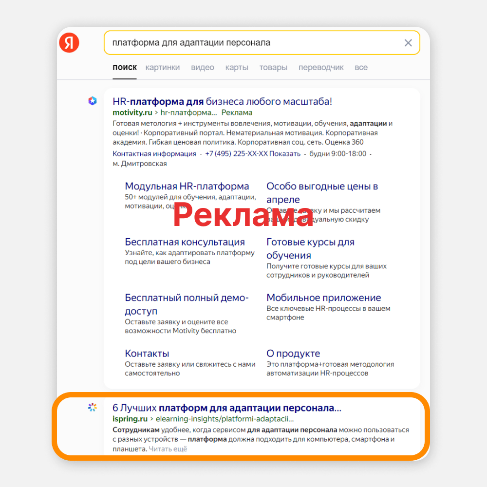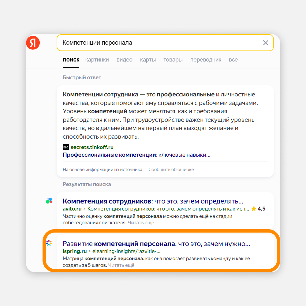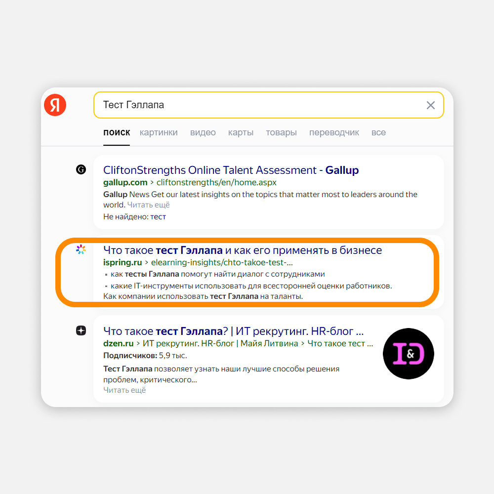 iSpring — B2B-проект. В сегменте «бизнес для бизнеса» аудитория всегда узкая: она ищет информацию для выполнения своей работы. Если выбрать для SEO правильные ключевые запросы, все сложится: вы дадите клиенту нужную информацию, а он как минимум узнает о бренде. Как максимум — станет клиентом. Смотрите на примере: