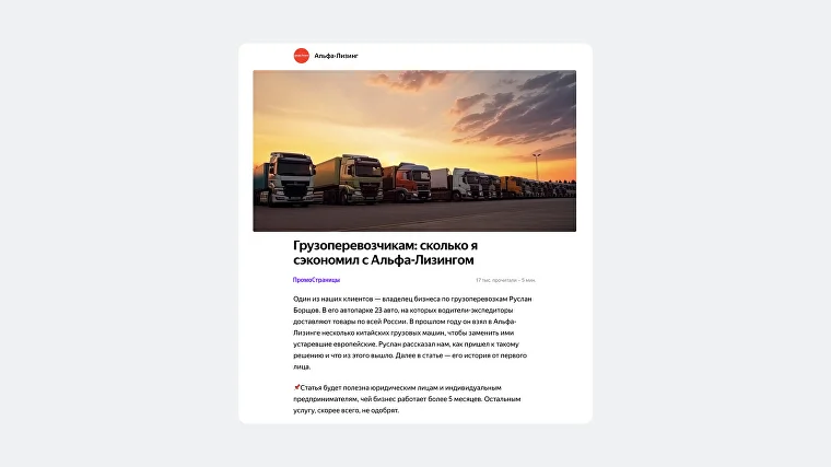 Одной из задач клиента было повышение спроса на лизинг грузовых авто. Чтобы достичь этой цели, мы решили написать юзкейс, потому что реальные истории всегда вызывают у людей больше доверия.