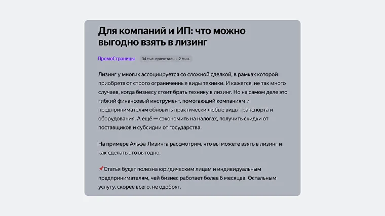 Альфа-Лизинг хотели повысить узнаваемость бренда и получить новые заявки на услугу. Для продвижения решили использовать ПромоСтраницы.