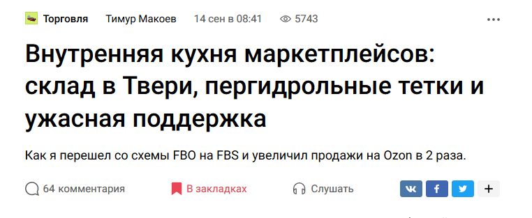 Как видите, в этих вопросах все: и история сотрудничества клиента с маркетплейсами, и конкретные случаи (жиза и боль!), и польза — например, как правильно промаркировать и упаковать товар, чтобы его приняли в маркетплейс. Не все читатели это знали, и статья закрыла возможные пробелы.