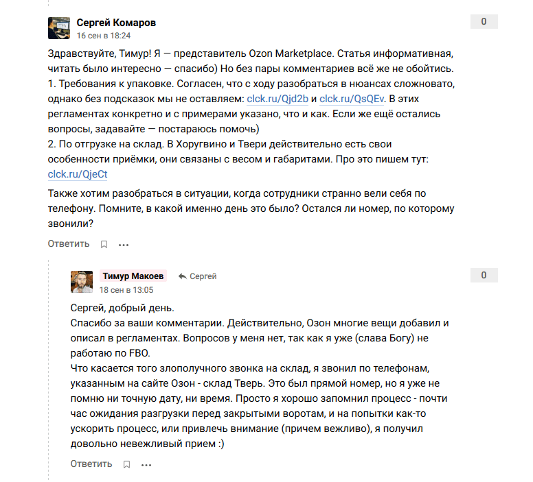 Что ценно, в комментарии пришел представитель Ozon, и ребята пообщались: