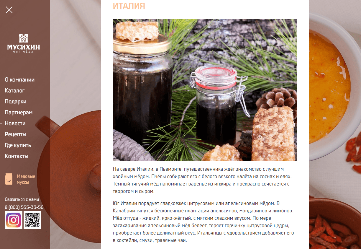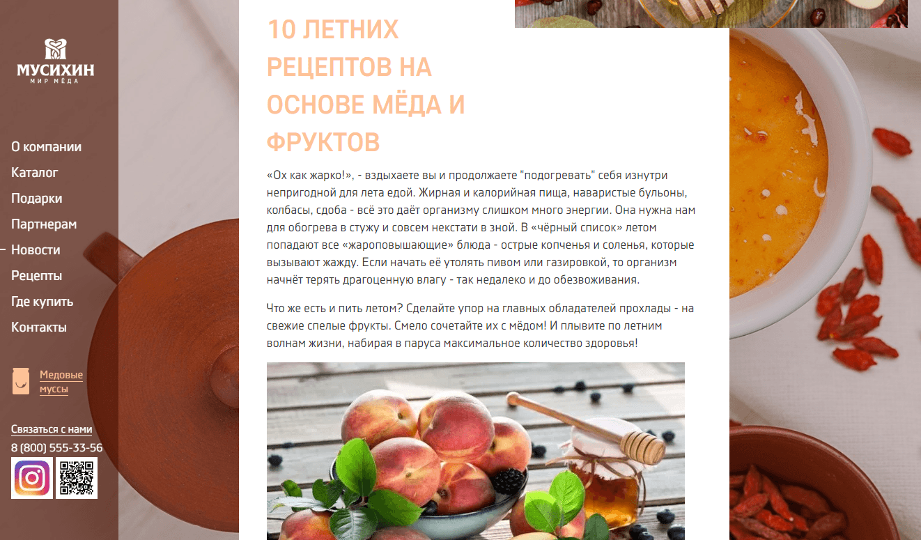 Требовалось увеличить поисковый трафик на сайт за счет интересных материалов, связанных с мёдом. Планировалось также вписать в статьи ссылки на товары и разделы, чтобы реализовать и коммерческие переходы на сайт.