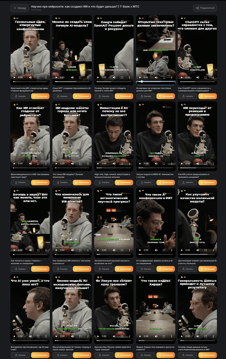 Клиент был удивлен скоростью и качеством работы современных сервисов. Как итог все 2000 шортсов были поставлены в расписание на публикацию.