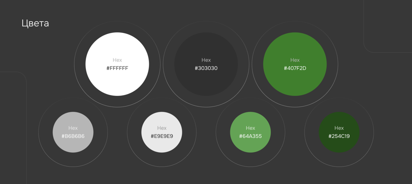 В качестве основных использовали четыре оттенка нейтрального серого - они гармонично сочетаются с акцентными оттенками, подчеркивая их благородство.