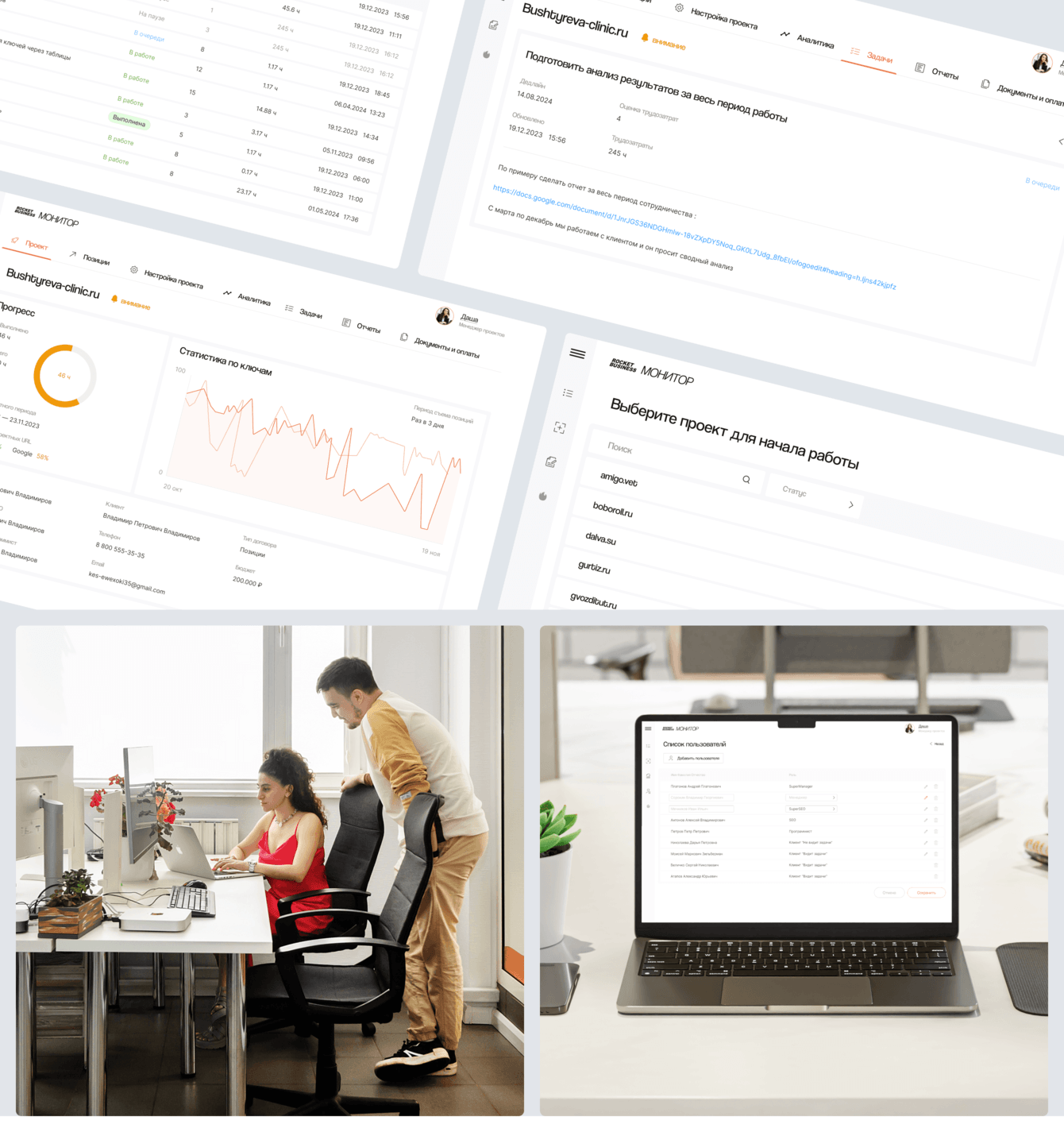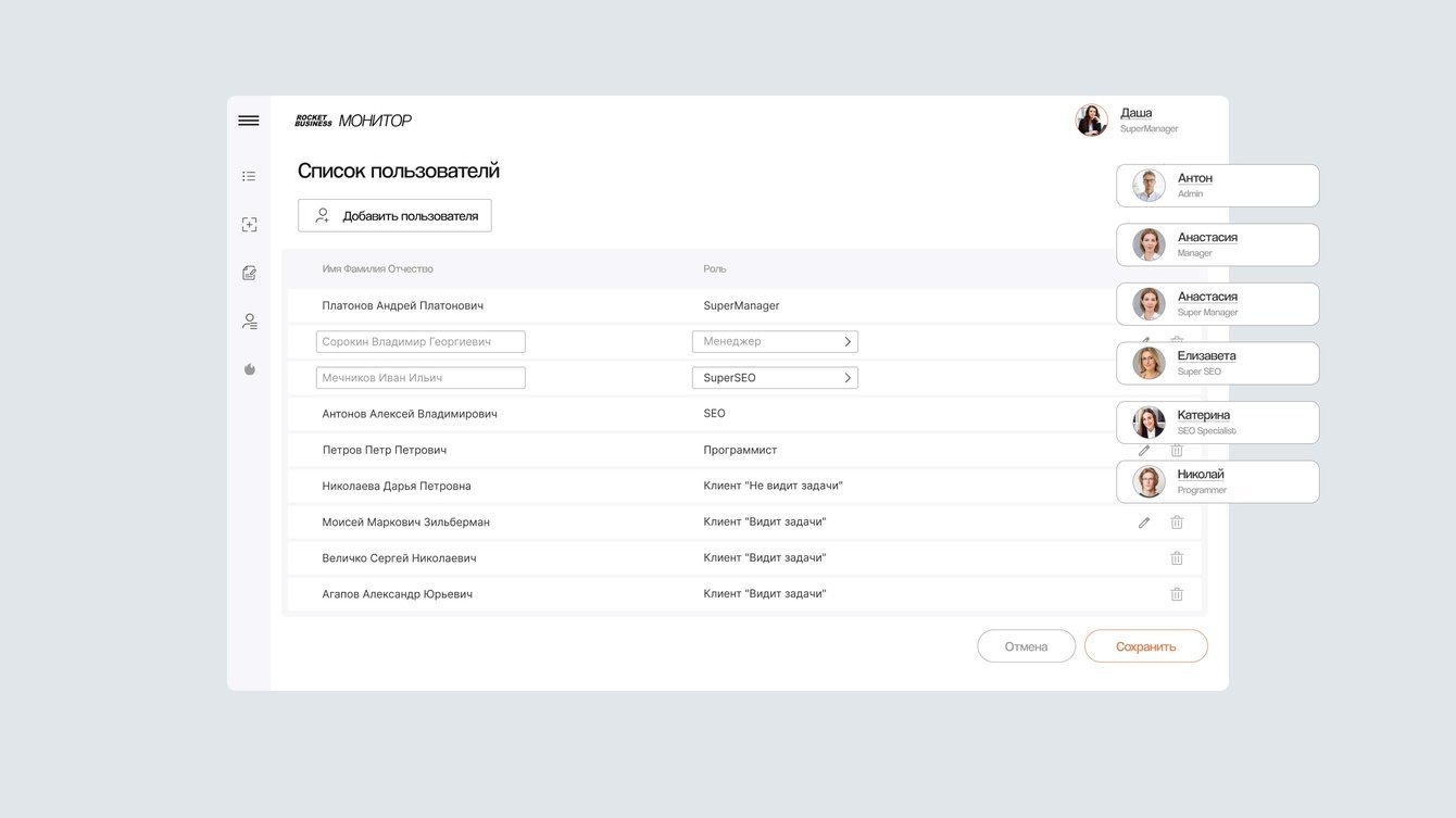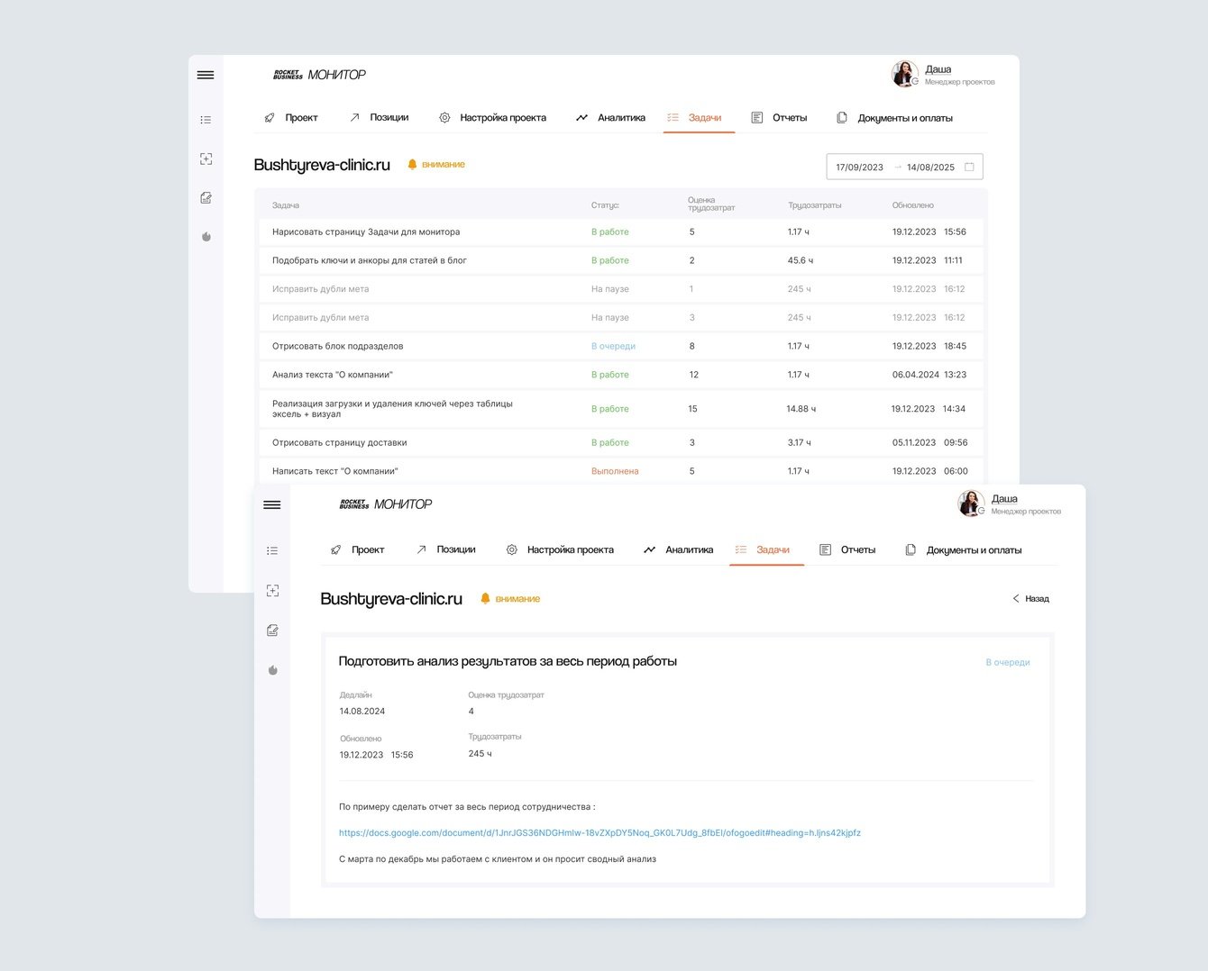 Rocket Business.Монитор — система для отслеживания позиций в выдаче, хранения информации по проектам, аналитике, отчетности по трудозатратам. Давайте разберем его функции подробнее*.