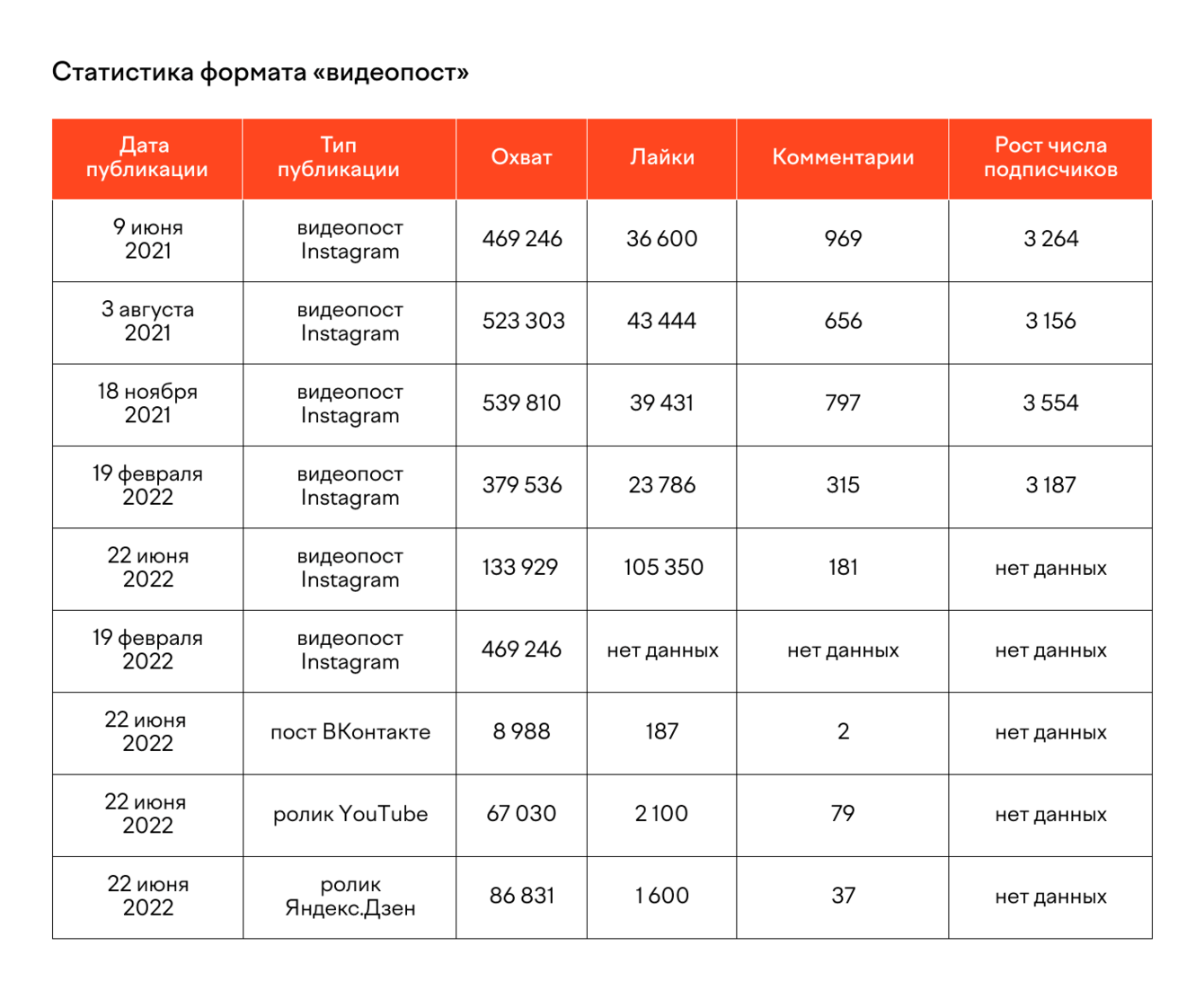 За 2020-2022 год мы инициировали четыре видеопубликации и несколько серий сториз: