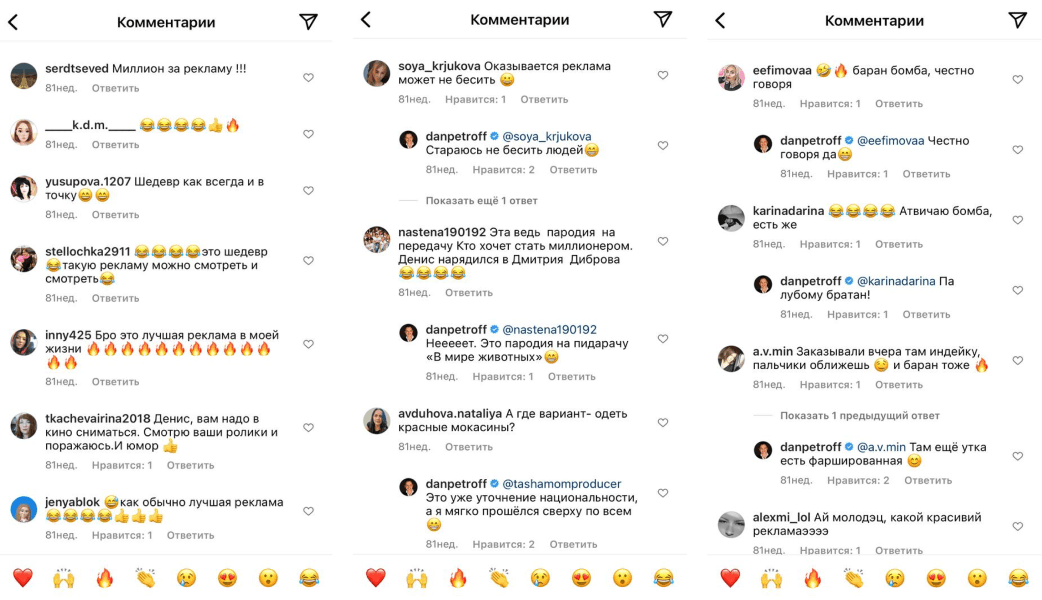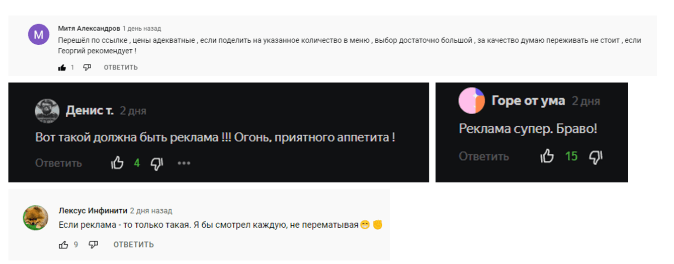 Реклама у блогера получила положительный отклик. Примеры комментариев:
