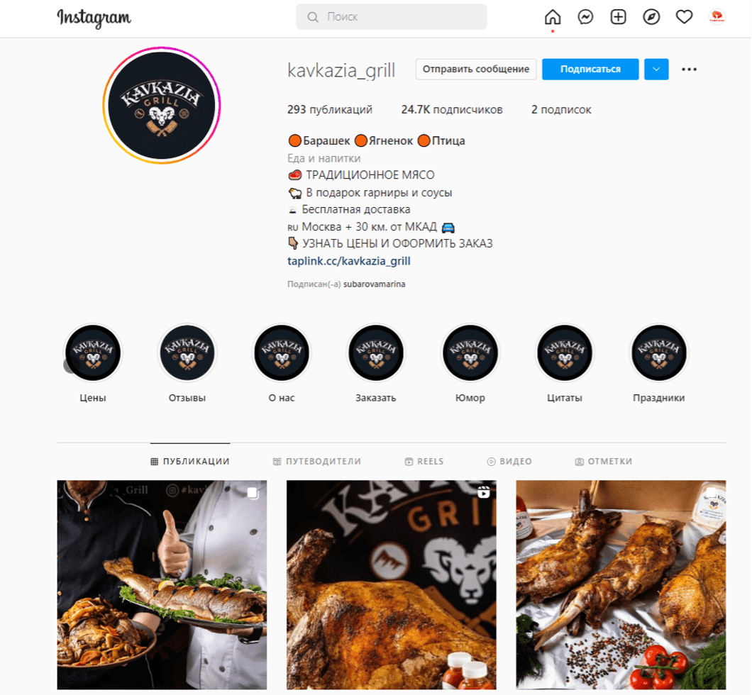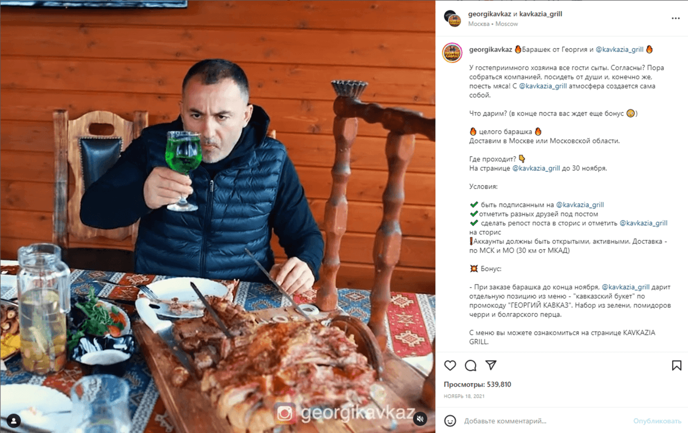 Пример интеграции с блогером в Instagram, целью который было привлечь новую аудиторию через конкурс на барашка на гриле.