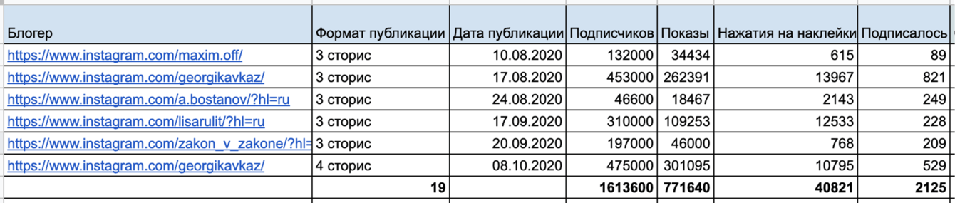 За два года работы с блогером с 17.08.2020 по 22.06.2022 мы получили следующие результаты: