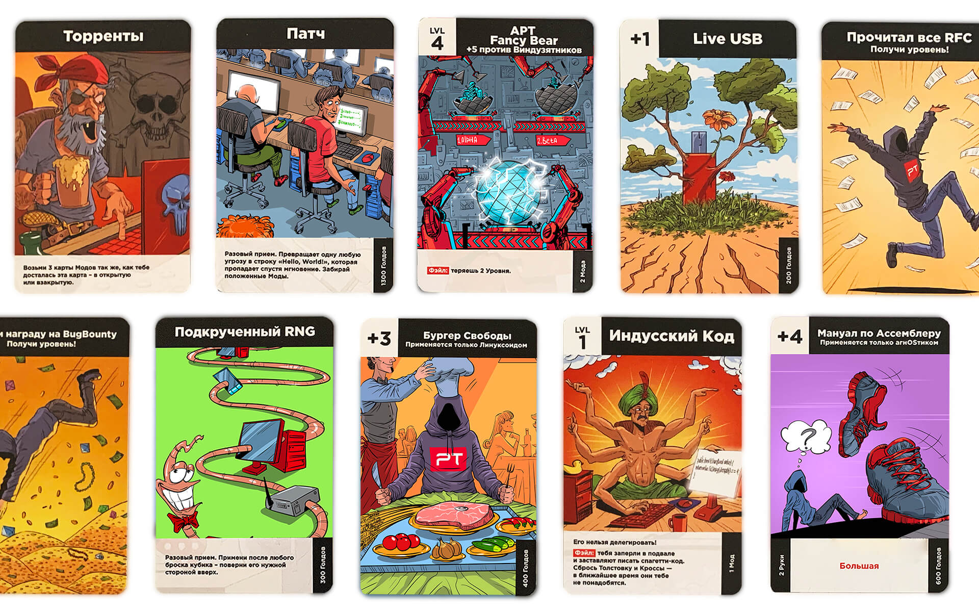 Компания Positive Technologies, ведущий разработчик решений в области информационной безопасности, обратилась к нам с задачей создания иллюстраций для настольной игры. Игра разрабатывалась в популярной механике «Манчкин» и должна была освещать тему информационной безопасности в легкой и доступной форме, подчеркивая важность этой темы