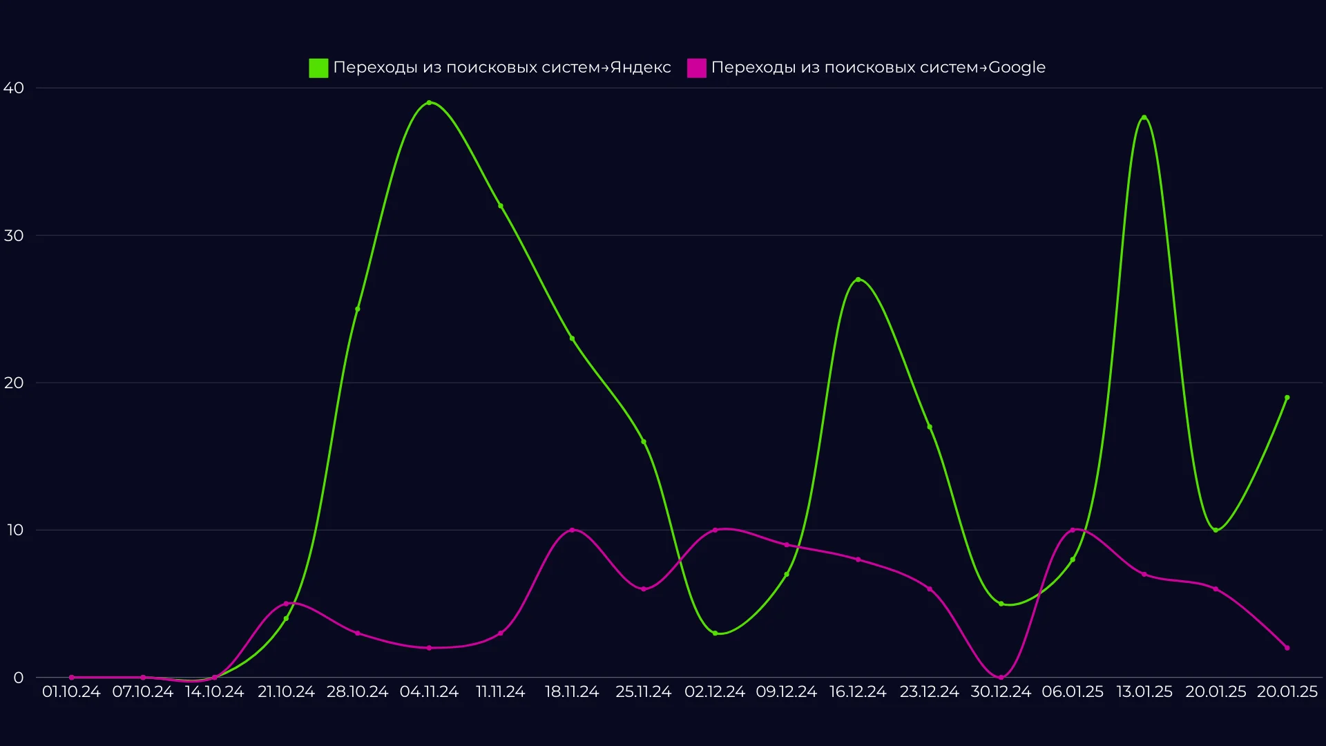 Сайт стал заметно более привлекательным для поисковых систем и конечных пользователей. Зафиксирован стабильный рост органического трафика и конверсий. Оптимизация позволила успешно выделиться на фоне конкурентов, а гибкая стратегия обеспечивает устойчивое развитие проекта.