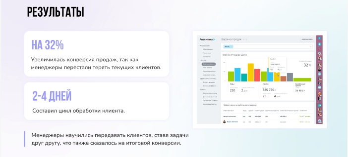 Наша задача состояла в том, чтобы помочь бизнесу вывести и сформулировать регламенты работы с клиентом и настроить единую базу клиентов.