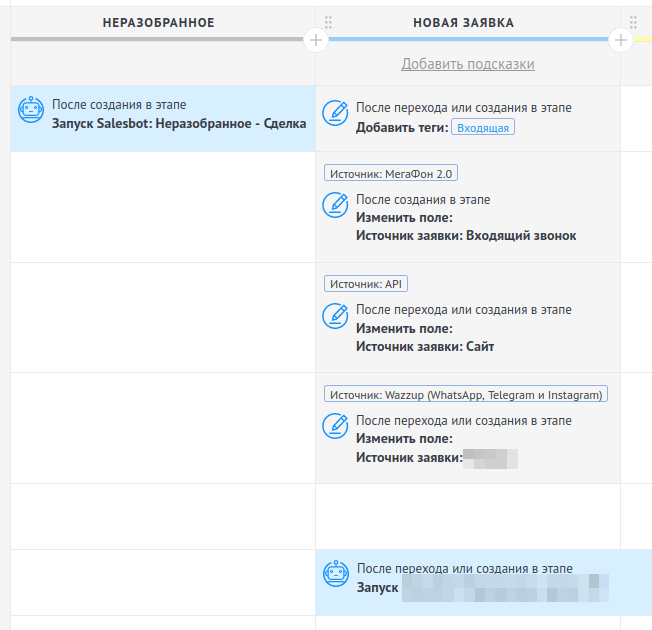 настройка смены статусов сделок в зависимости от действий менеджера;