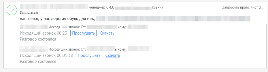 Также настроили обратную синхронизацию — информация из CRM поступала в карточку лида Carrot quest.