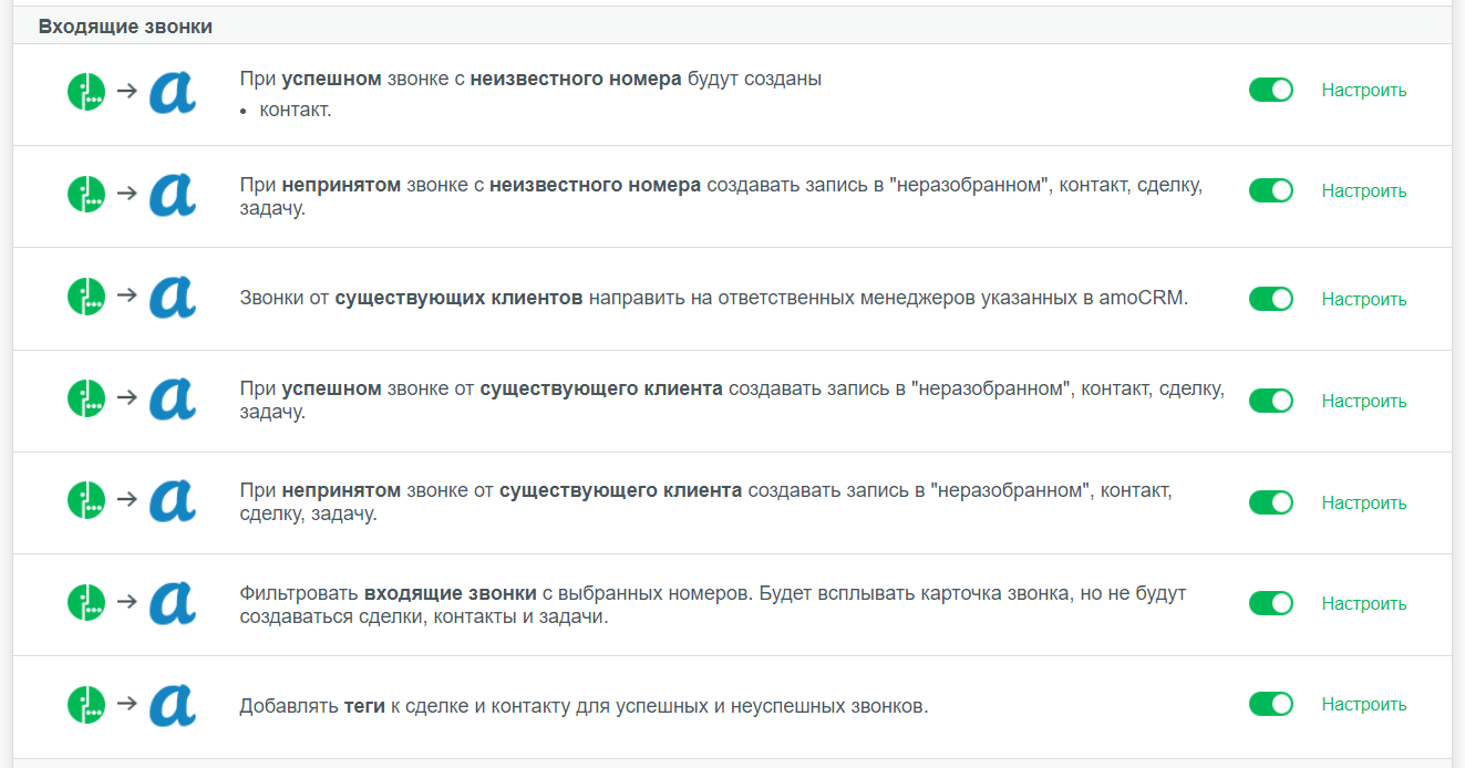 В ходе внедрения и настройки amoCRM была интегрирована со следующими системами: