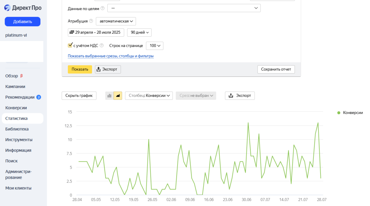 Обеспечить стабильное присутствие бренда «Платинум» в топе поисковой выдачи и создать широкое охватное представление в Рекламной сети Яндекса (РСЯ), эффективно конкурируя с другими фитнес-клубами Владивостока. Цель — привлечение новых клиентов и регулярное пополнение базы посетителей.