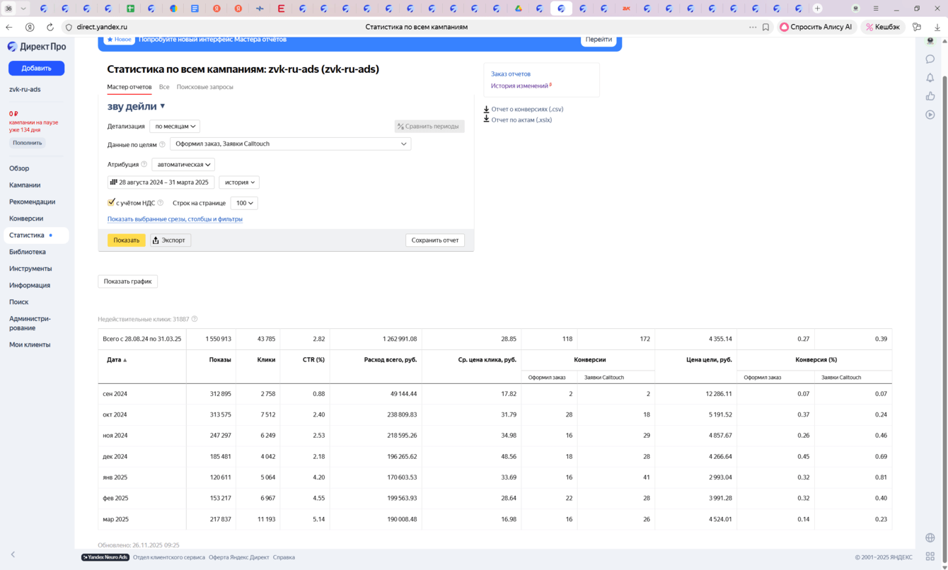 С сентября 2024 по март 2025 года мы добились заметного роста эффективности рекламных кампаний: