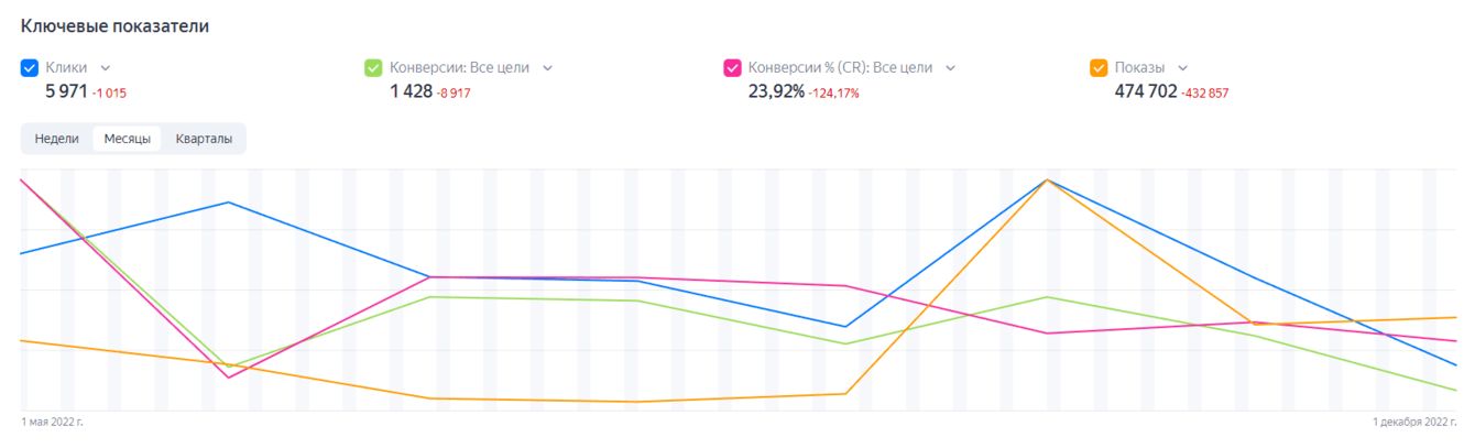 Подготовили сайт для приема трафика, настроили цели в метрике. Запустили трафик.