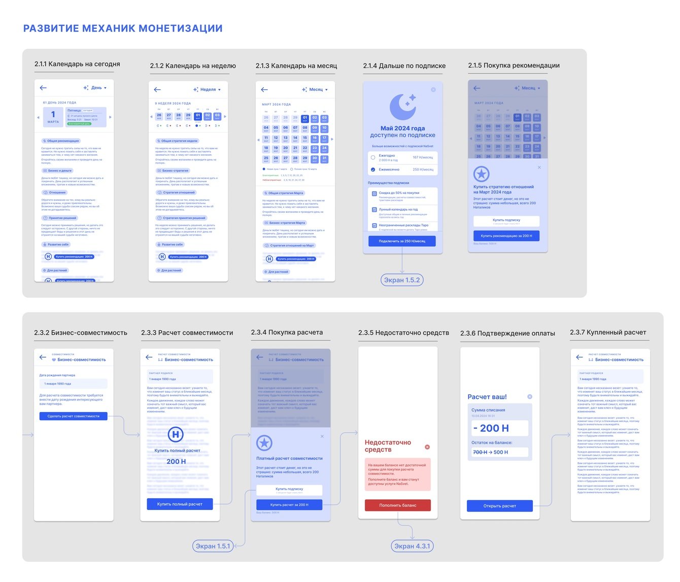 Например, базовые расчёты (карта дня, сильные стороны) сделали бесплатными, а детальные трактовки и анализ совместимости — платными. Чтобы повысить LTV, добавили подписку, которая снижает стоимость покупок.