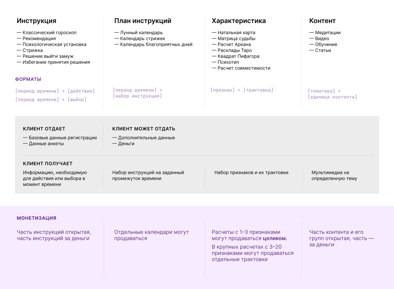 В итоге весь объем материалов логично разделили на категории. На основе этих категорий сформировали 4 модуля услуг с вариантами монетизации.