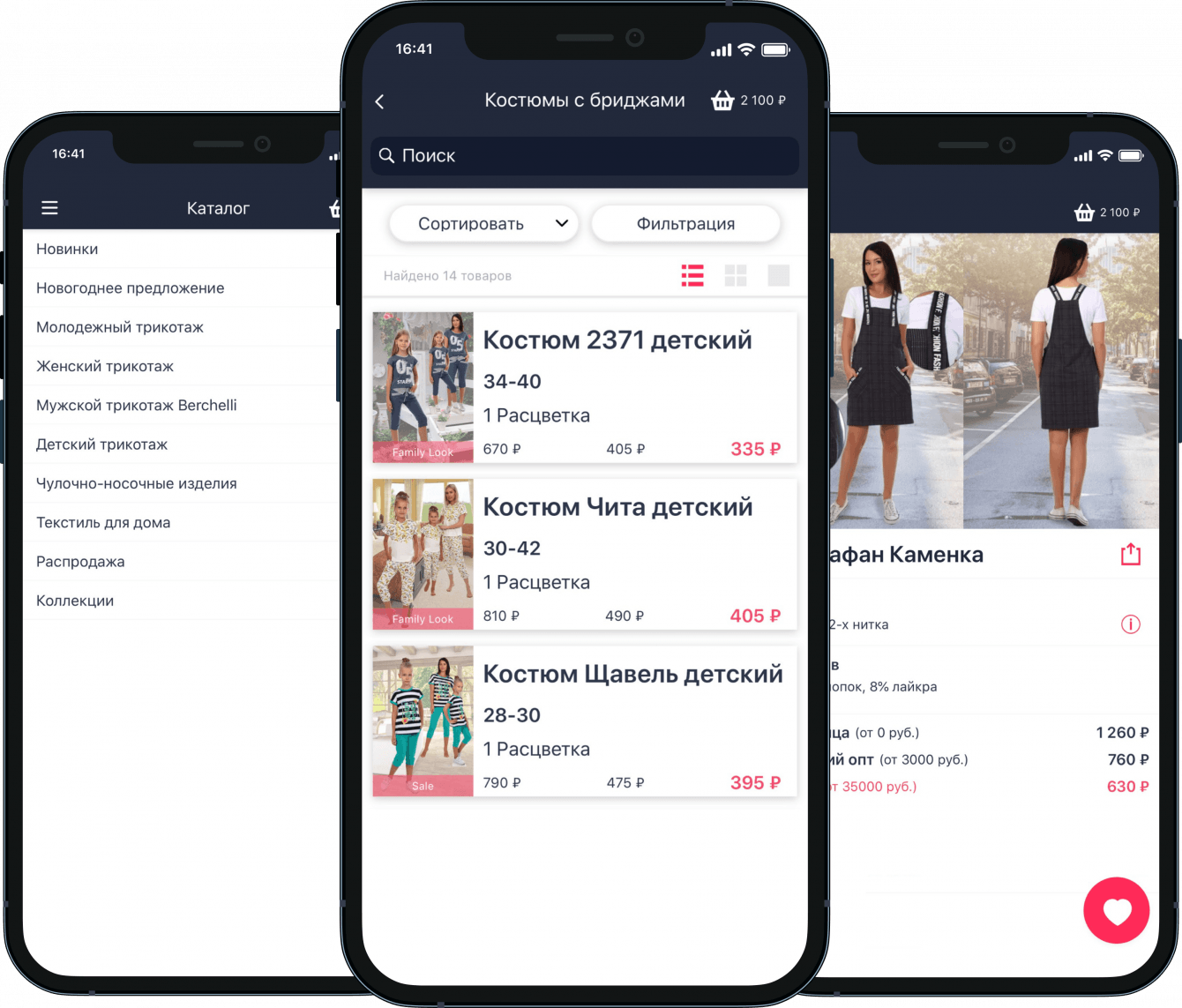 Интернет-магазин для оптовой продажи одежды: разработка мобильного приложения Натали Трикотаж (iOS/Android), пользователи которого могут: