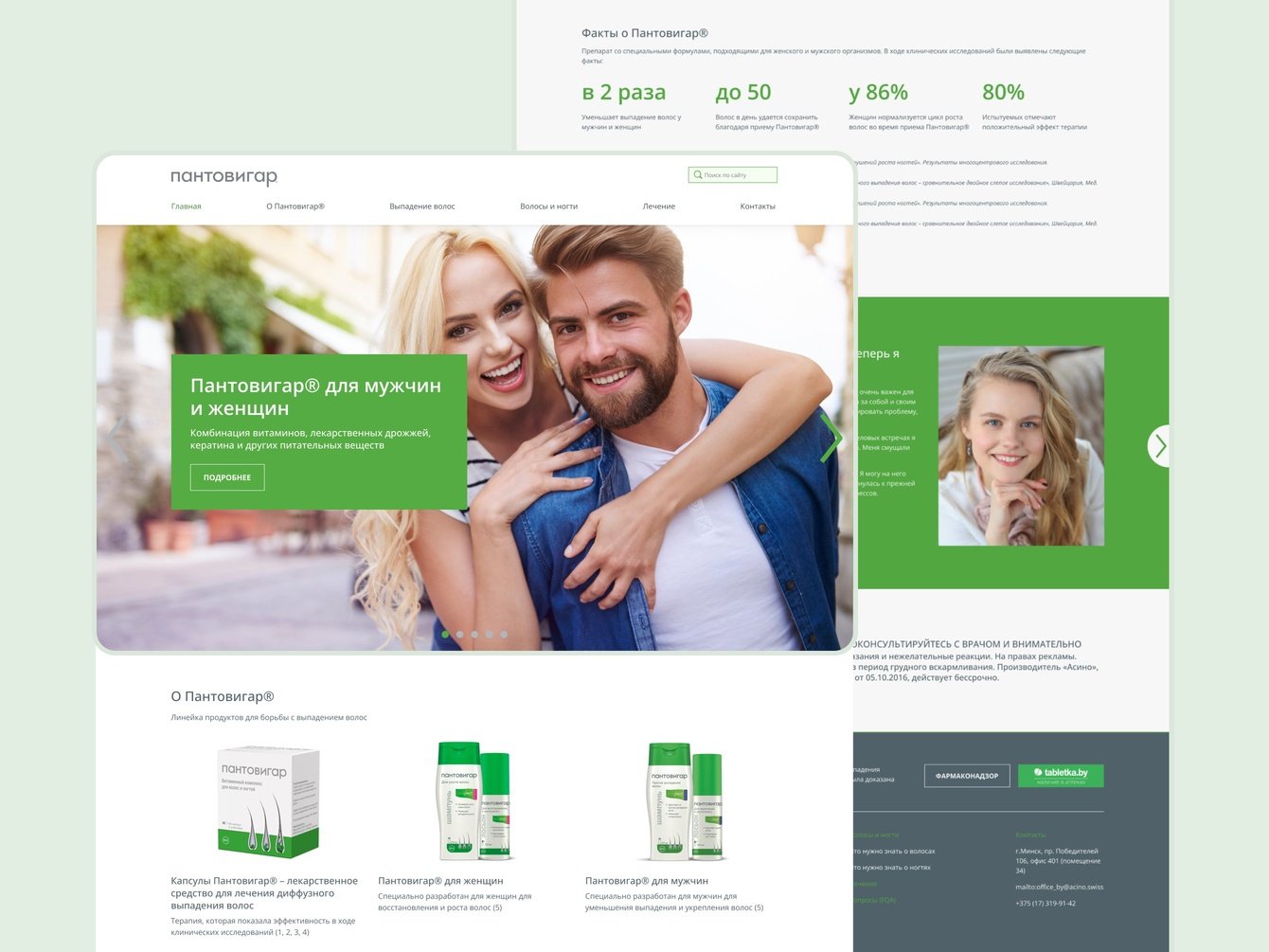 Мы разработали продуктовый сайт о Пантовигар, направленный на информирование о проблеме выпадения волос и действии препарата.