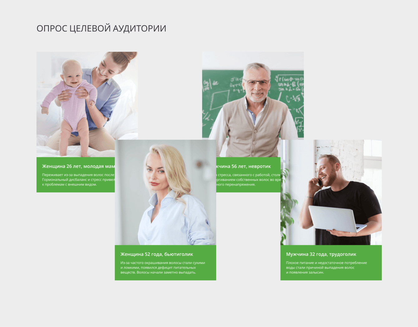 Мы задали им вопросы об их образе жизни, привычках и проблемах. На основе исследования мы поняли, какие темы волнуют потребителей и на чем стоит сделать акцент.