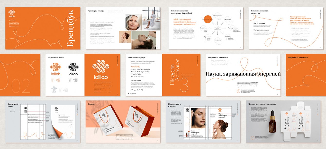 Идентичность бренда Lolilab построена на дуализме: с одной стороны, строгая наука и интеллектуальный бэкграунд, с другой ― яркая энергия и свободный характер. Эту связь мы передали через визуальные контрасты: разные по характеру и плотности шрифты, белый и насыщенный оранжевый цвета, гладкие и фактурные поверхности.