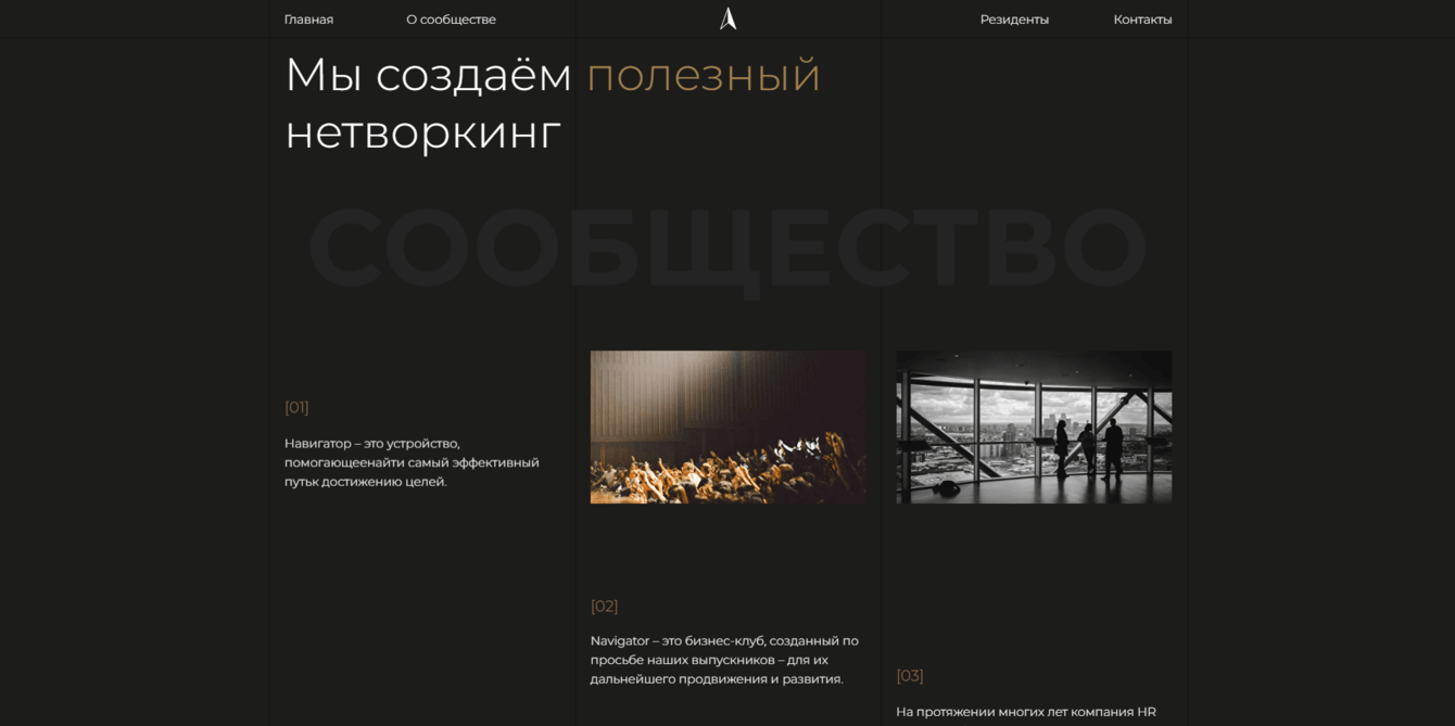 Размещение резидентов: Команда использовала функционал интернет-магазина на Tilda для размещения резидентов бизнес-клуба "Navigator". Это позволило представить каждого резидента через индивидуальный товар или услугу, упростив процесс взаимодействия между резидентами и посетителями сайта.