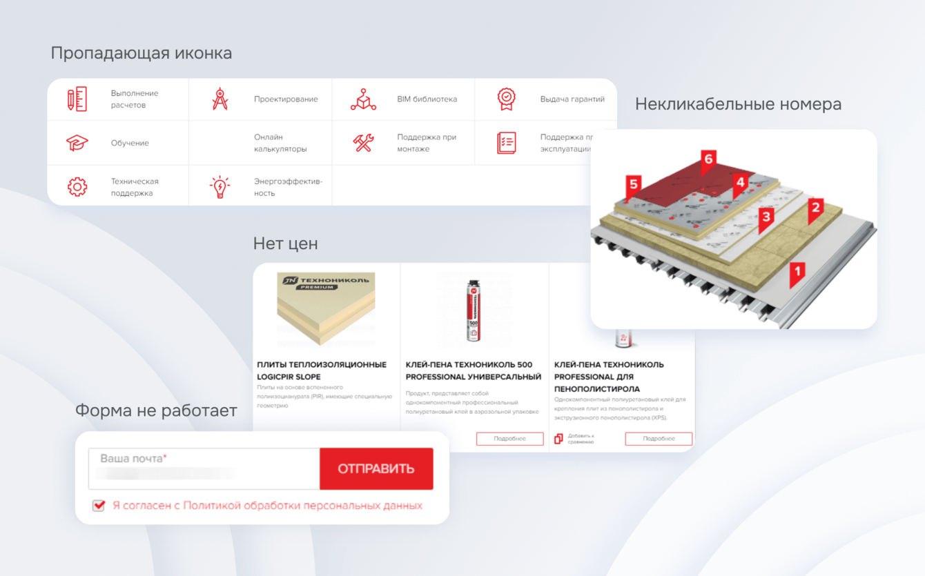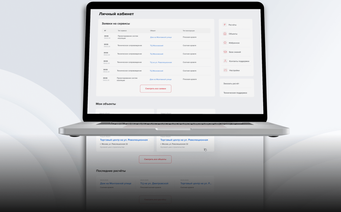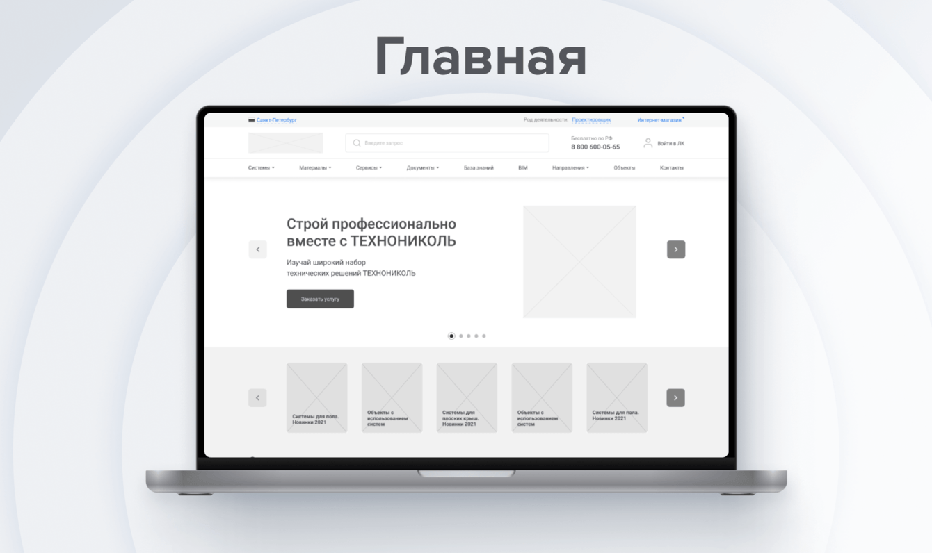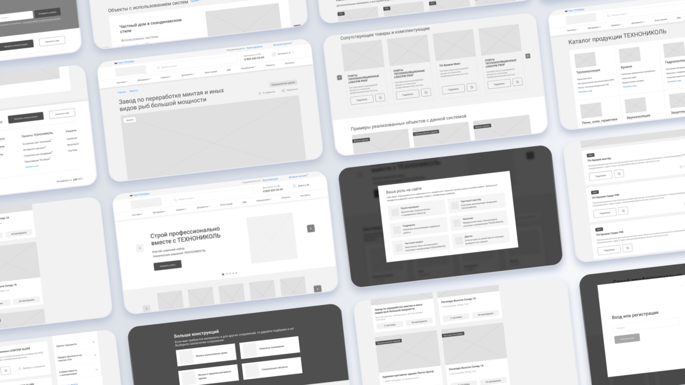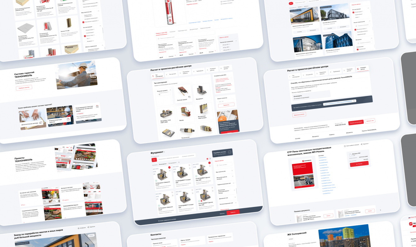 Для полного редизайна старого интерфейса ТЕХНОНИКОЛЬ мы сформировали 2 команды дизайнеров. Первая команда занималась анализом конкурентов, поиском внутренних проблем, коммуникацией с заказчиком и так далее. Второй передавали всю информацию и гипотезы, после чего они приступили к прототипированию и дизайну.