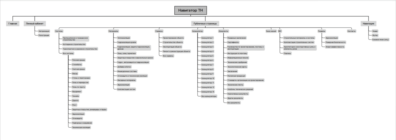 Благодаря масштабному аудиту прошлой версии сайта, аналитике метрик, составлению CJM, различным исследованиям и постоянной коммуникации с заказчиком мы поняли, какой сайт нужен сервису. Все эти выводы легли в основу майндмапа, на котором обозначили самые важные разделы на сайте.