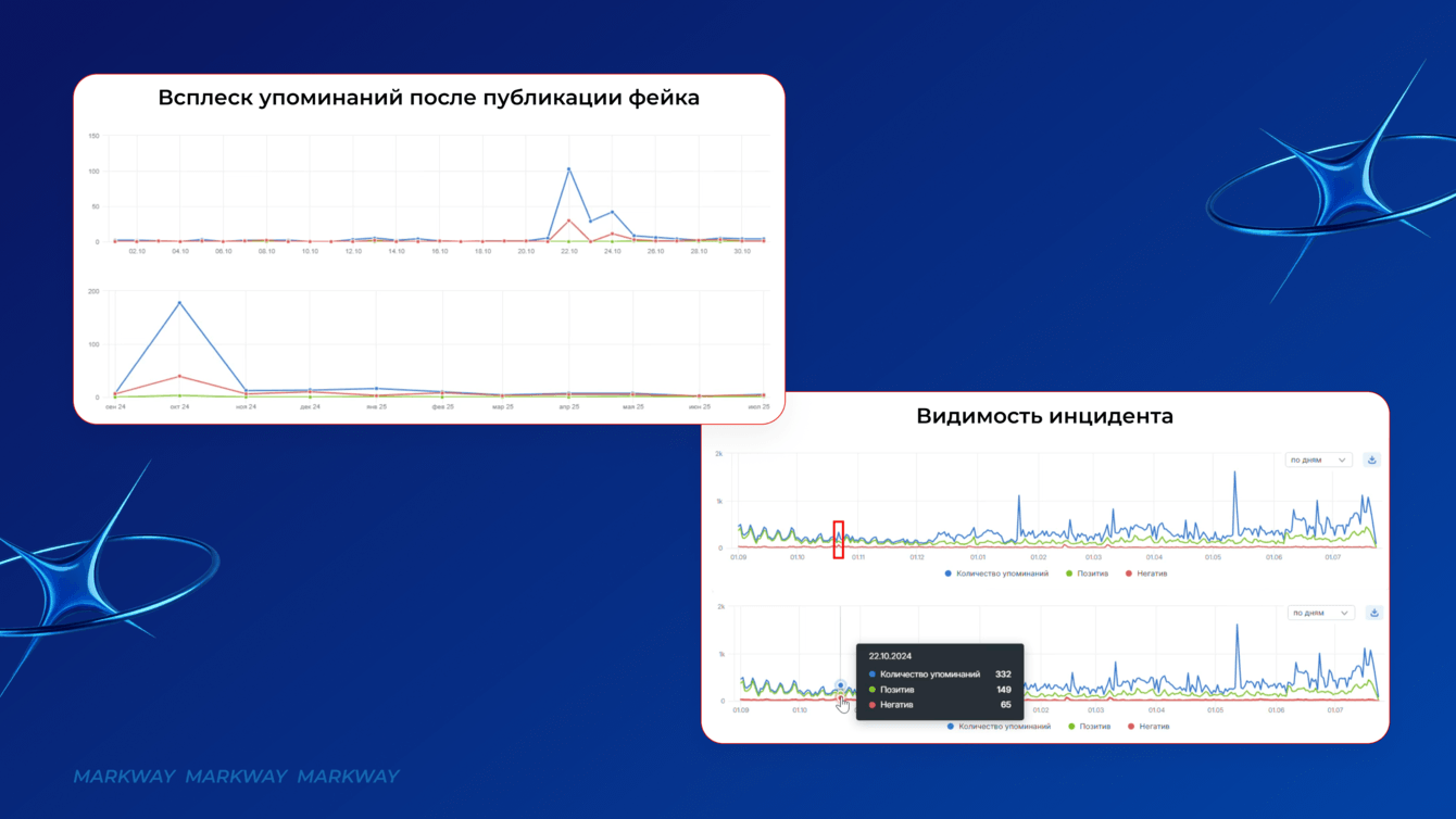 В особенности хочу отметить, что мы работали не только с фейком, но и с общим репутационным фоном — контекстом обсуждений, тональностью, эмоциональной реакцией аудитории. Это позволило не просто локализовать инцидент, а развернуть повестку в пользу бренда.