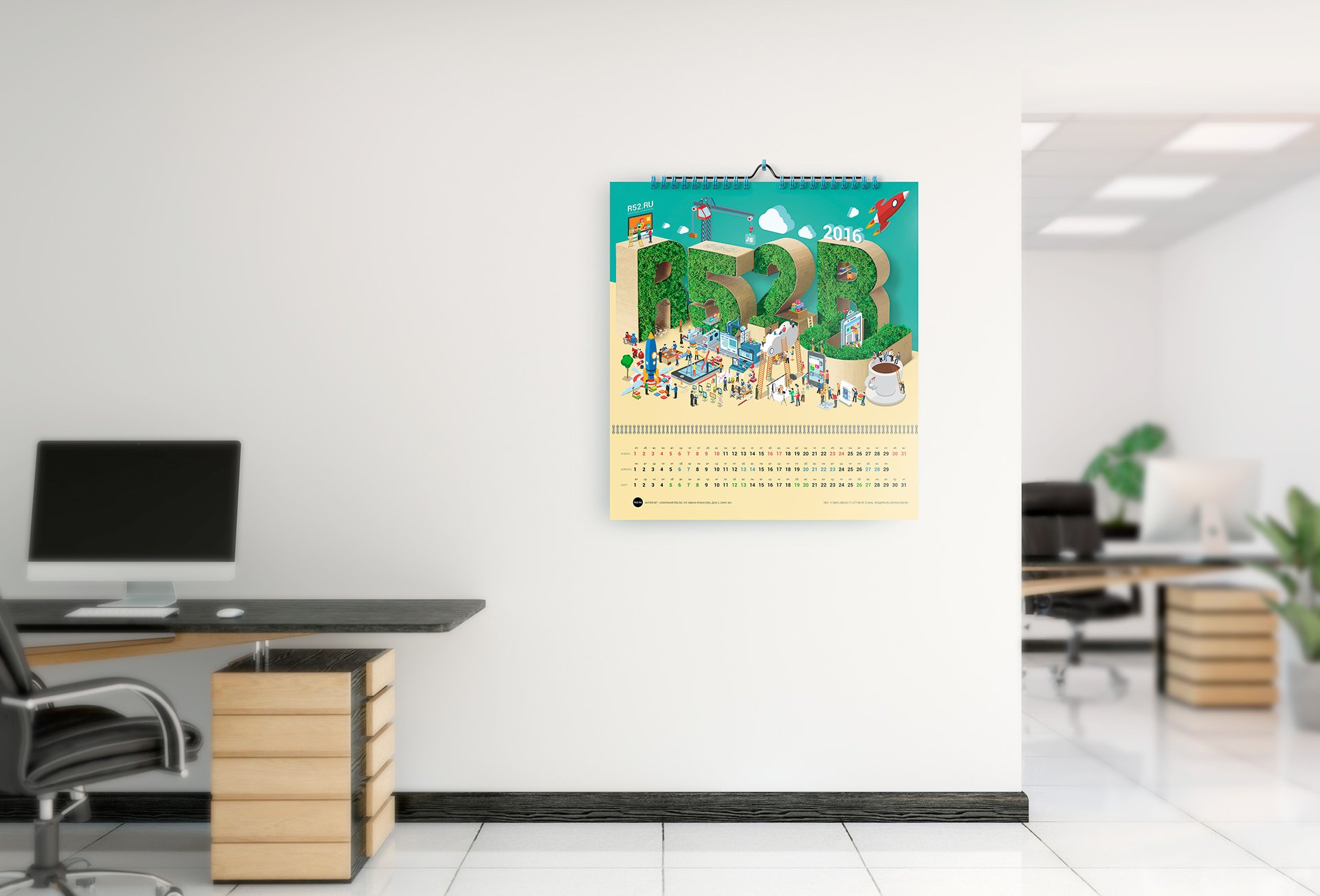 В итоге получилось позитивненько. Правда, некоторые недоброжелатели утверждают, что пользоваться нашим календарем как календарем можно только с расстояния менее 3 метров — цифры мелковаты. Мы им не верим, но и не спорим. Ведь на скучной офисной стене очень даже привлекает внимание.