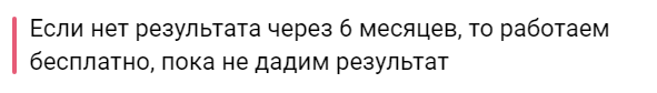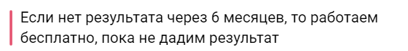 Наша философия такова: ни один клиент не уйдет от нас без результата, если он проработал с нами 6 месяцев. Когда отдачи не происходит, мы работаем по сайту бесплатно, пока не дадим результат. Звучит эта гарантия просто.
