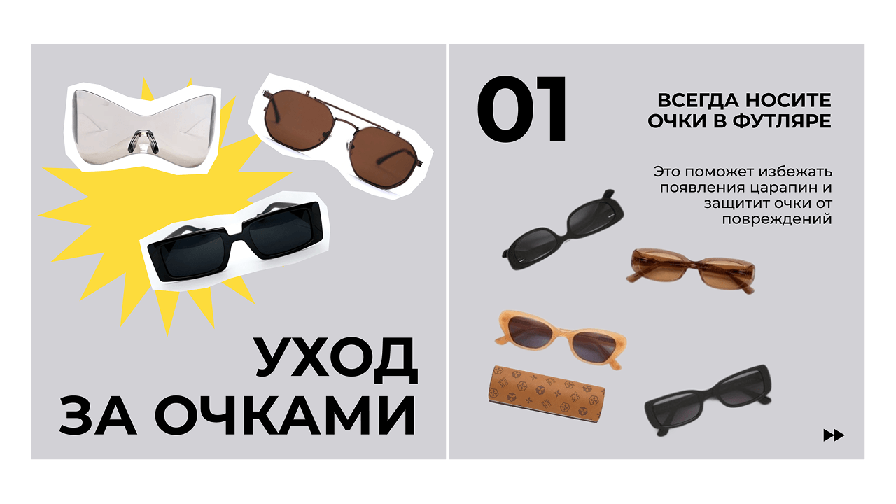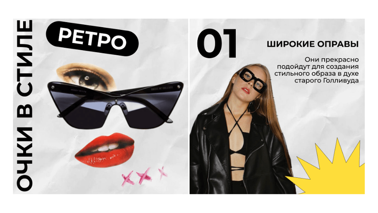 1) Мы пошли дальше простого анонсирования новинок. Вместо сухого перечисления ассортимента мы создавали вдохновляющие подборки аксессуаров, идеально подходящих к определенным стилям. Например, вот здесь мы рассказывали о том, как подобрать идеальную пару очков для создания неповторимого ретро-образа.