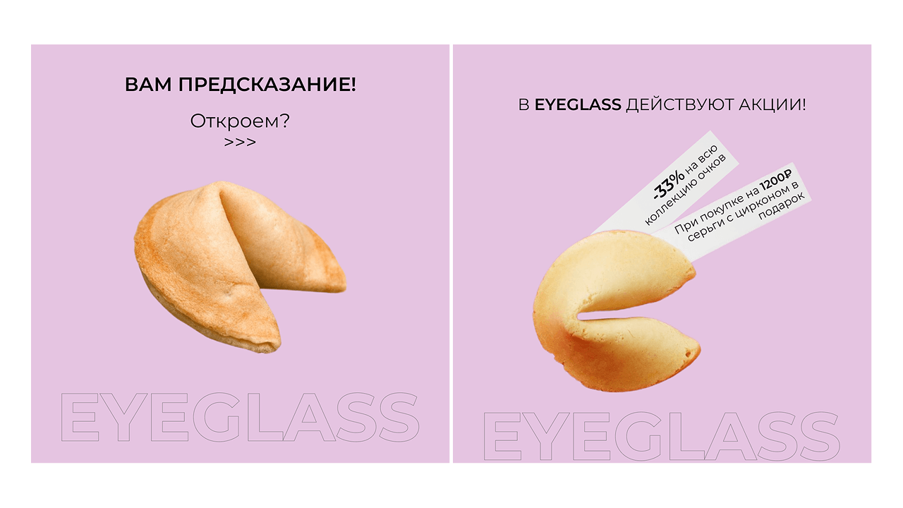 2) А что насчет акций? Как их можно креативно подать? Взять, к примеру, наши интригующие печеньки с предсказаниями. Сама идея предсказаний и загадок возвращает нас в беззаботное детство, пробуждая любопытство и желание узнать, «а что же там?».