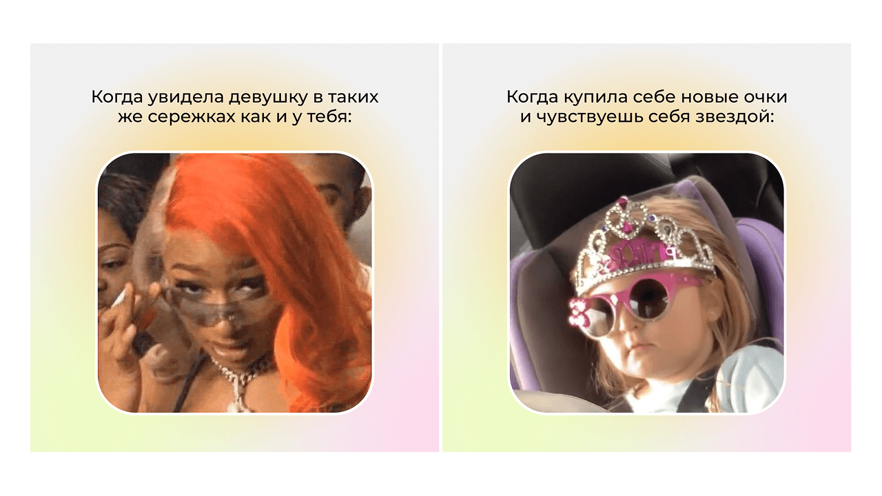 Мы можем создавать контент, релевантный каждому из этих интересов. Очки для вождения, стильные аксессуары для вечеринок, элегантные модели для офиса, яркие и необычные – для студентов.