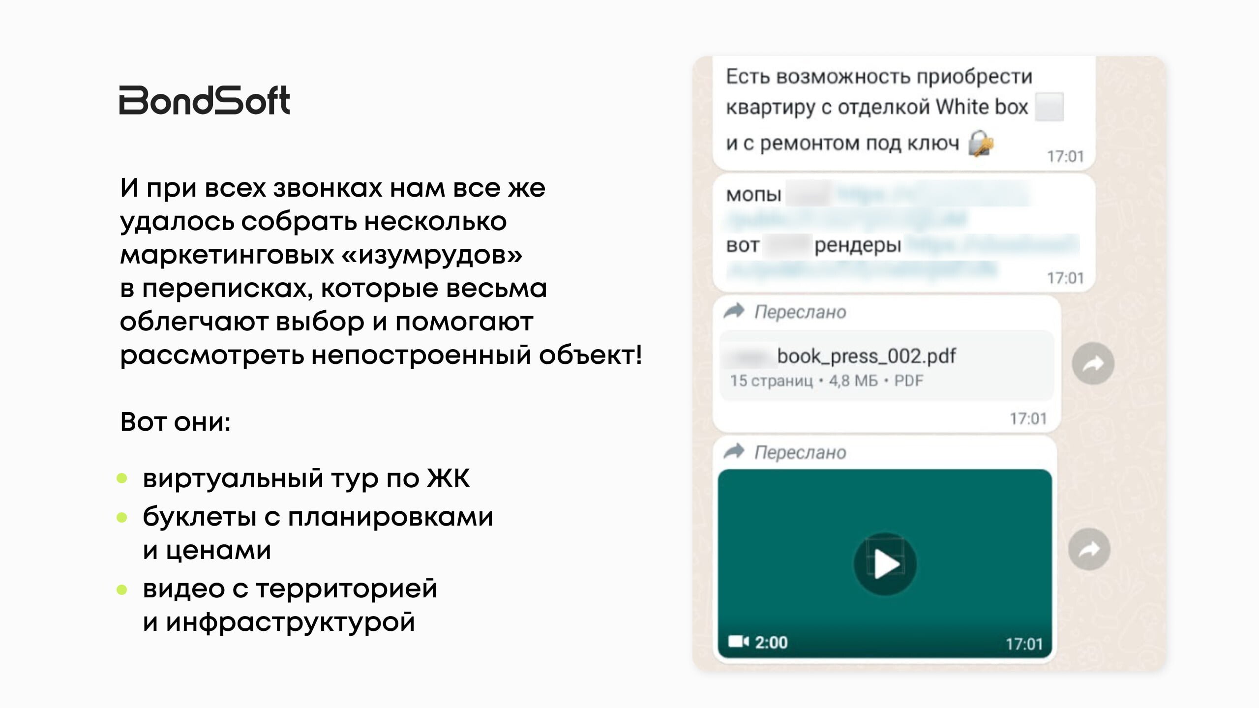 Мы анализировали качество общения: задаёт ли менеджер уточняющие вопросы, умеет ли влюбить в объект, договаривается ли о следующем шаге. Оказалось, далеко не все способны провести клиента от интереса к встрече — часто диалог обрывался после отправки информации.