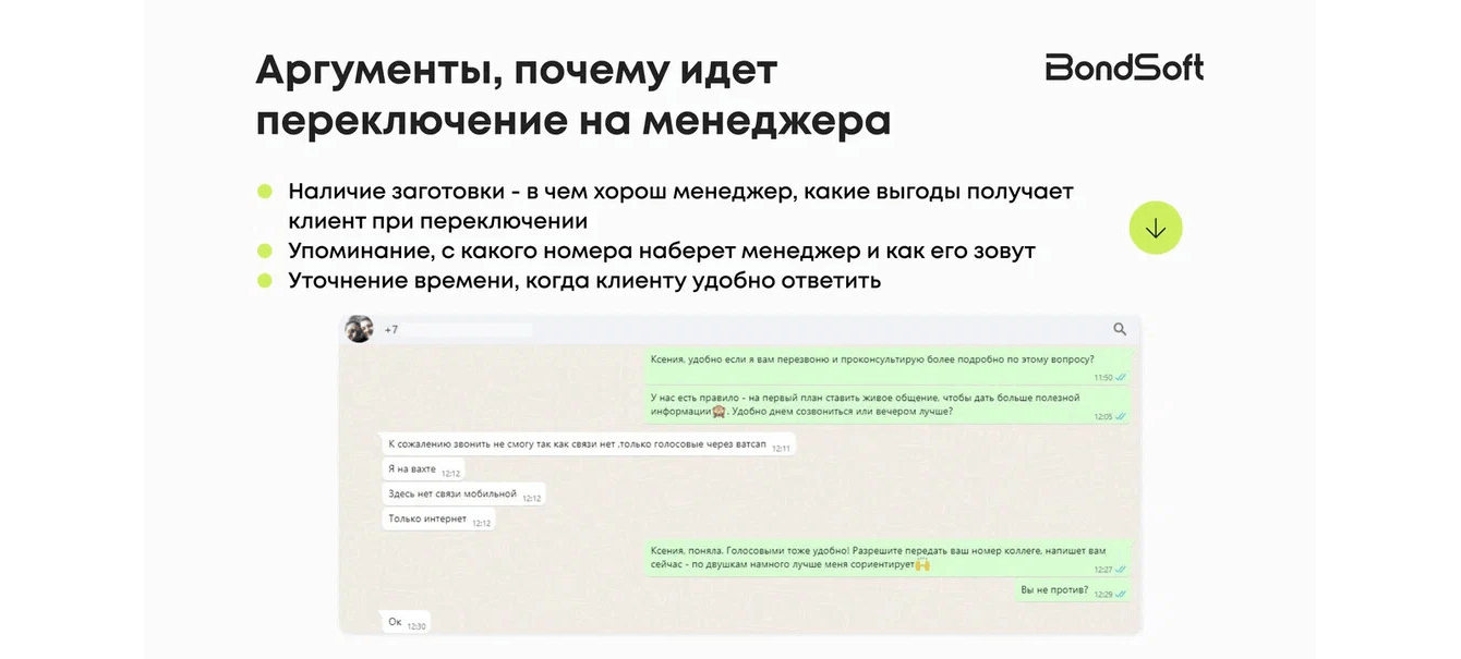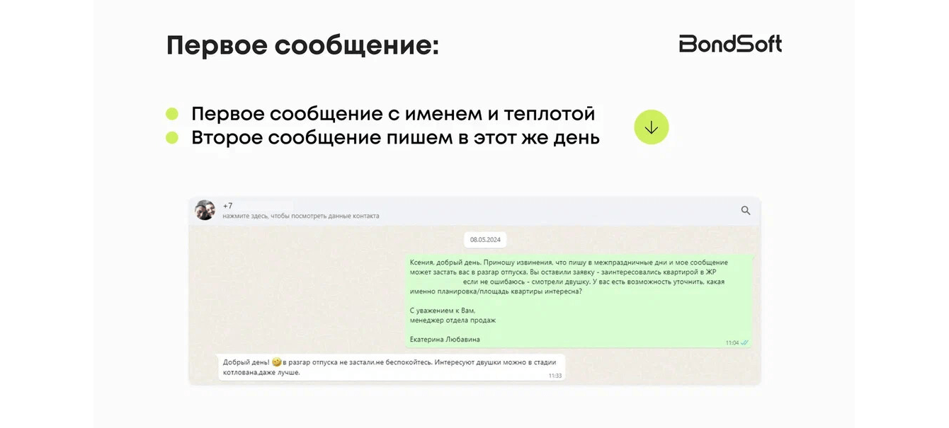 Никаких навязчивых скриптов. Только уважительное, тёплое, профессиональное сообщение и вовремя переданный контакт менеджеру.