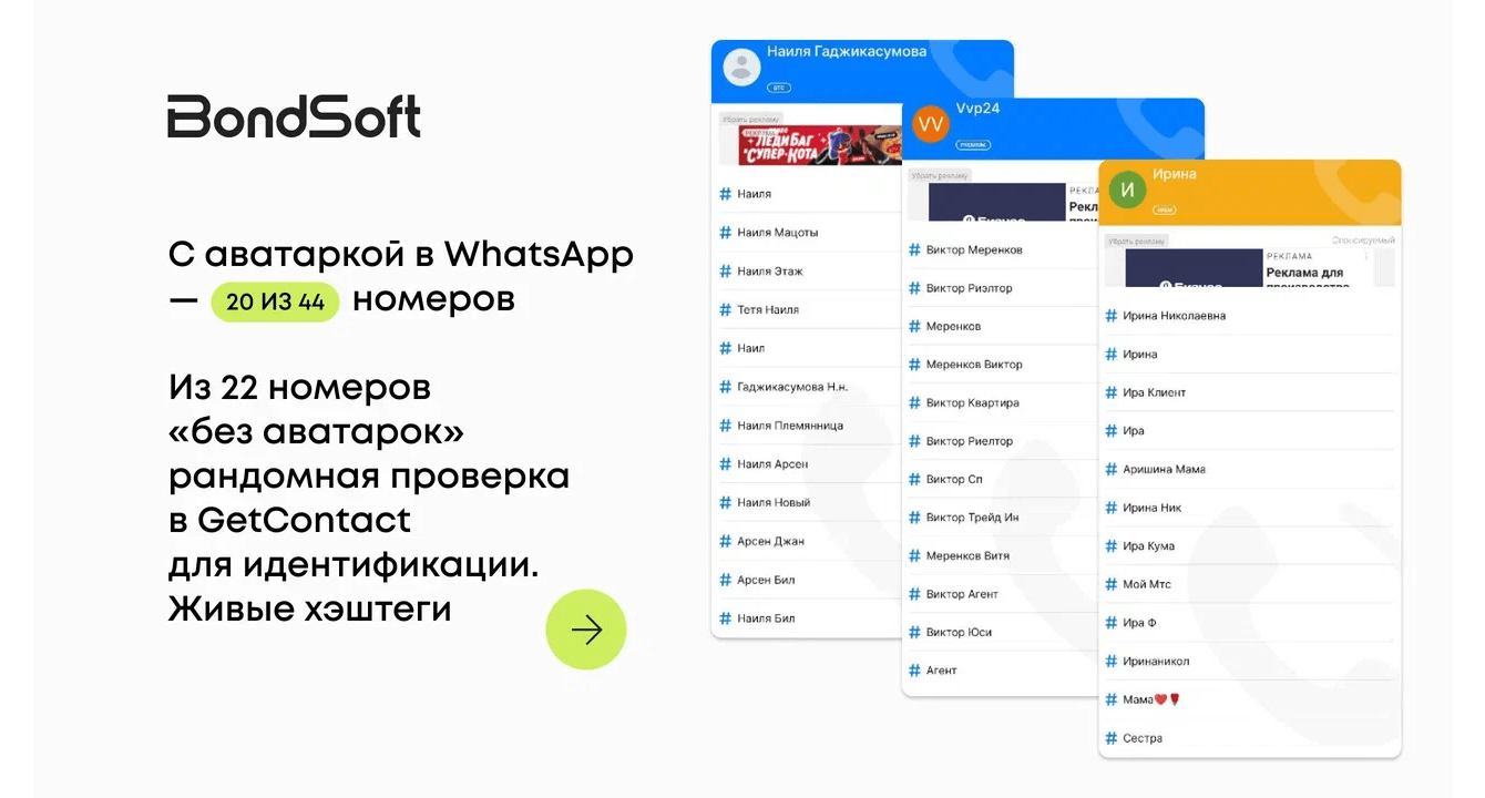 оставшиеся 22 — проверили через GetContact: смотрели живые хэштеги и активность;